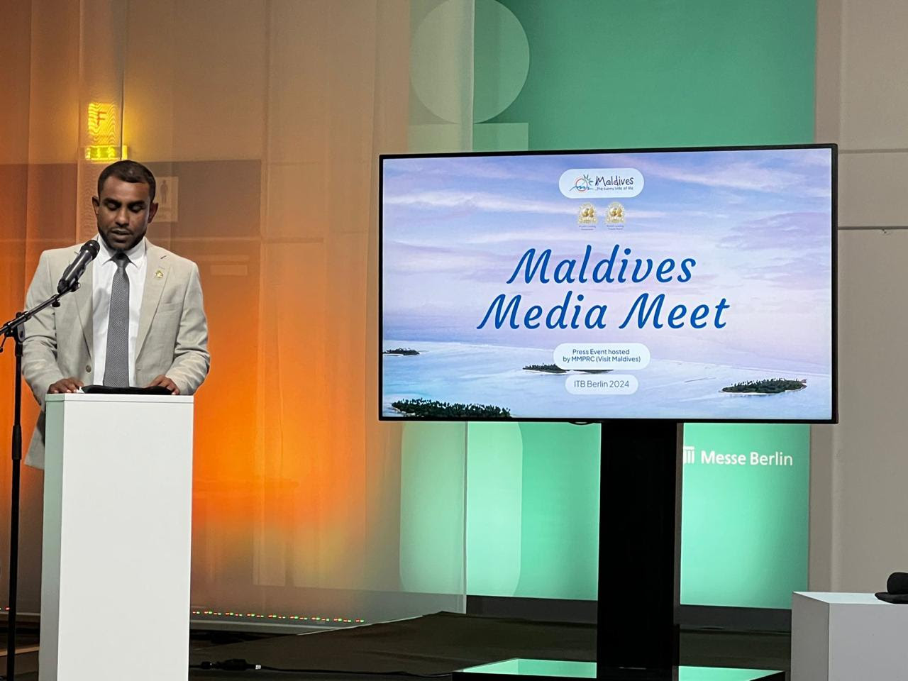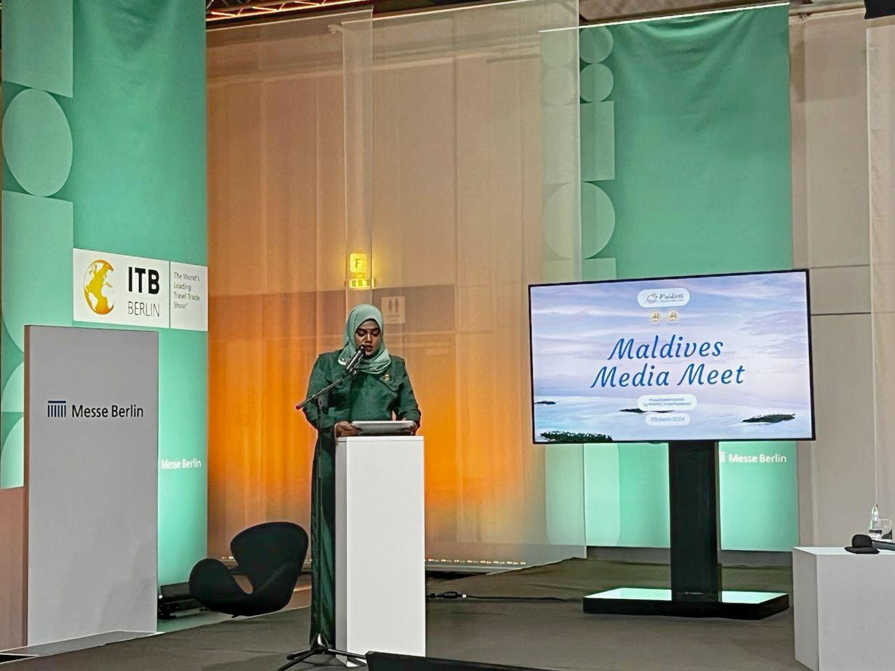 The Maldives Marketing and Public Relations Corporation (MMPRC/Visit Maldives) hosted a Media Meet press conference during the ITB Berlin 2024 event this Tuesday. Speakers at the conference included Minister of Tourism Ibrahim Faisal, MMPRC Board Chairperson Ayesha Nurain Janah, and MMPRC CEO & MD, Fathmath Thaufeeq.