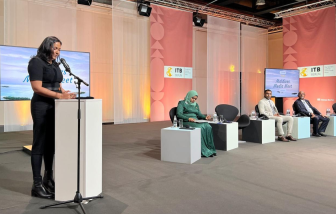 Fathmath Thaufeeq, Chief Executive Officer and Managing Director (CEO & MD) of MMPRC reaffirmed the government’s commitment to responsible and inclusive tourism development at the Maldives Media Meet during ITB Berlin 2024. Fathmath highlighted the Maldives’ remarkable tourism success, surpassing pre-pandemic levels with over 1.8 million visitors in 2023 and achieving record-breaking arrivals in February 2024. She outlined MMPRC’s initiatives to promote new tourism segments like cultural, sports, and medical tourism, alongside strengthening existing segments such as nautical tourism. Fathmath also announced plans for more transit hotels in Male and Hulhumale to cater to short-stay travellers and stopovers, fostering unique experiences within vibrant city communities. Development efforts are expanding to southern areas, benefiting local communities, with initiatives like the Visit Maldives’ Atolls website segment. Highlighting efforts to increase women’s employment in tourism, Fathmath expressed pride in leading MMPRC as its first female CEO & MD. She concluded by inviting everyone to visit the Maldives and witness the positive impact of these initiatives firsthand, expressing confidence in the future of Maldivian tourism.