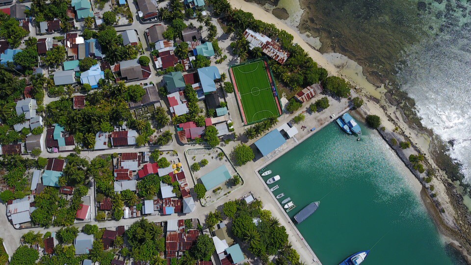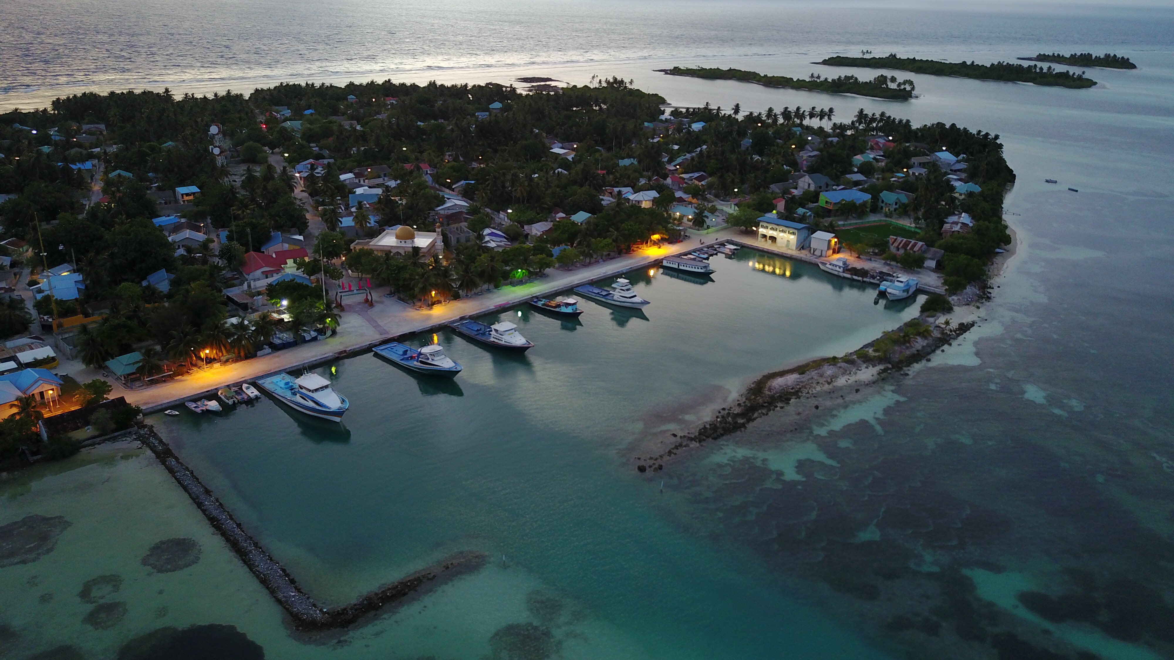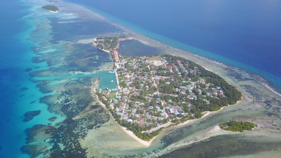Kolamaafushi perhaps is the most interestingly shaped island in the Atoll. From above the island’s unique isolation in the middle of the lagoon is clear. West of the outer reef, it looks slightly detached from the outer ring of the atoll reef. This island is formed by pairing Maafushi with an island on the south called Kola. The thin causeway hyphenating the two islands is transformed with new apartment buildings by Chinese government which the locals refer to as the “Anni flats”. Kolaa part of the island is tenanted by a powerhouse, few boatyards and herds of goats.