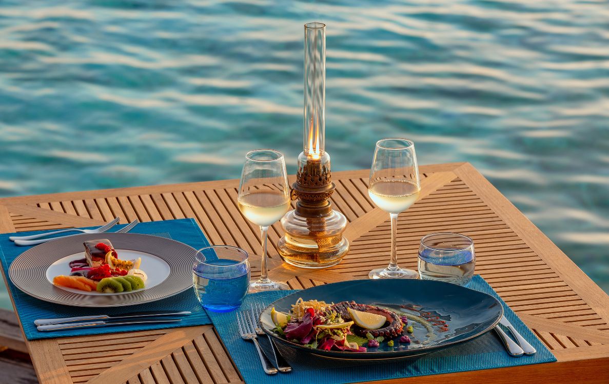 Dining at Komandoo Island Resort & Spa offers a variety of exceptional experiences. Aqua, the overwater fine dining restaurant, serves exquisite dishes paired with world-class wines. In contrast, Falhu, the main buffet restaurant, features live cooking stations and themed nights, including Maldivian Night and the Komandoo Seafood Festival. With a diverse selection of international cuisines, fresh seafood, and indulgent desserts, every meal at Komandoo is a delightful journey through global flavours, set against the mesmerising beauty of the Maldives.