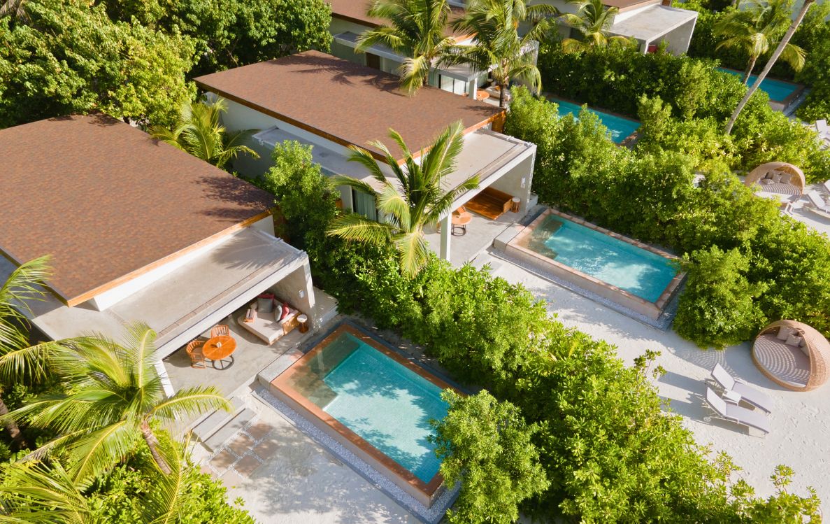 The resort features 75 luxurious villas, including beach and overwater options with private pools. At the heart of the resort is the Maldives’ largest pool, a 150-meter haven with jacuzzis, shallow zones for children, and an Olympic-size lap area. By night, this pool transforms into an enchanting dining venue under the stars.