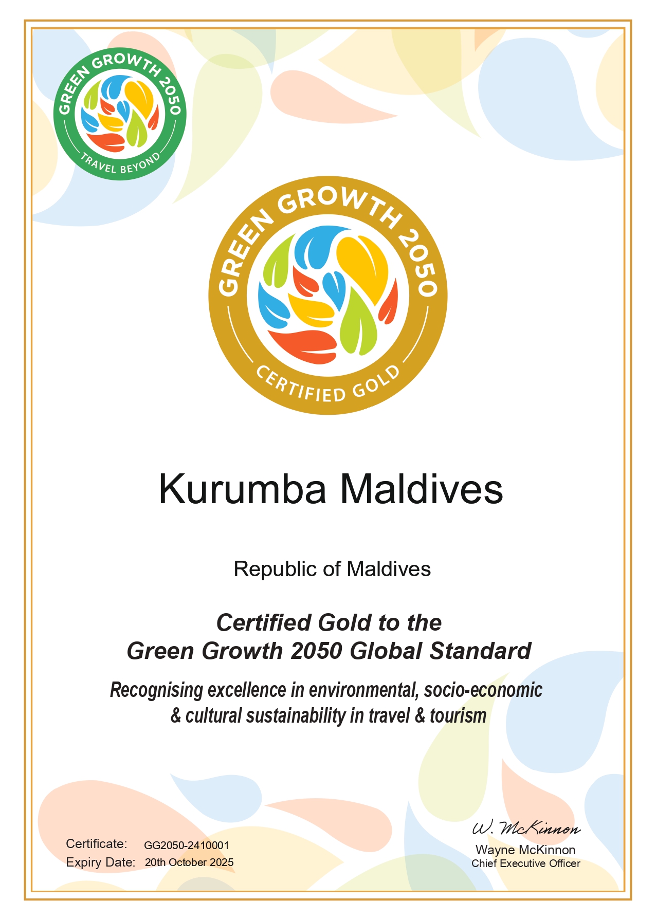 In a significant milestone for environmental advocacy, Kurumba Maldives has attained Gold Certification from Green Growth 2050. This accomplishment represents a notable upgrade from the resort’s previous Silver Certification, highlighting its unwavering dedication to environmental sustainability and responsible tourism practices.
