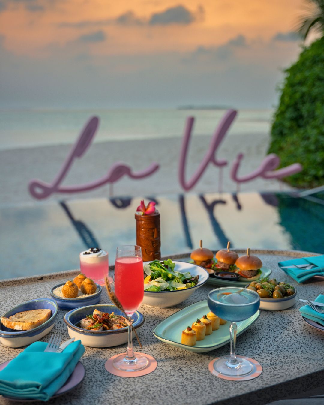 As the sun dips below the horizon, La Vie transforms into the ultimate golden hour retreat. Guests can sip on chilled rosé, soak in the stunning Maldivian sunset, and enjoy live music performances that set the tone for a sophisticated yet laid-back evening. Elevating the experience, exclusive happenings such as Sip & Paint sessions invite guests to unleash their creativity while enjoying handcrafted cocktails and curated offers.
