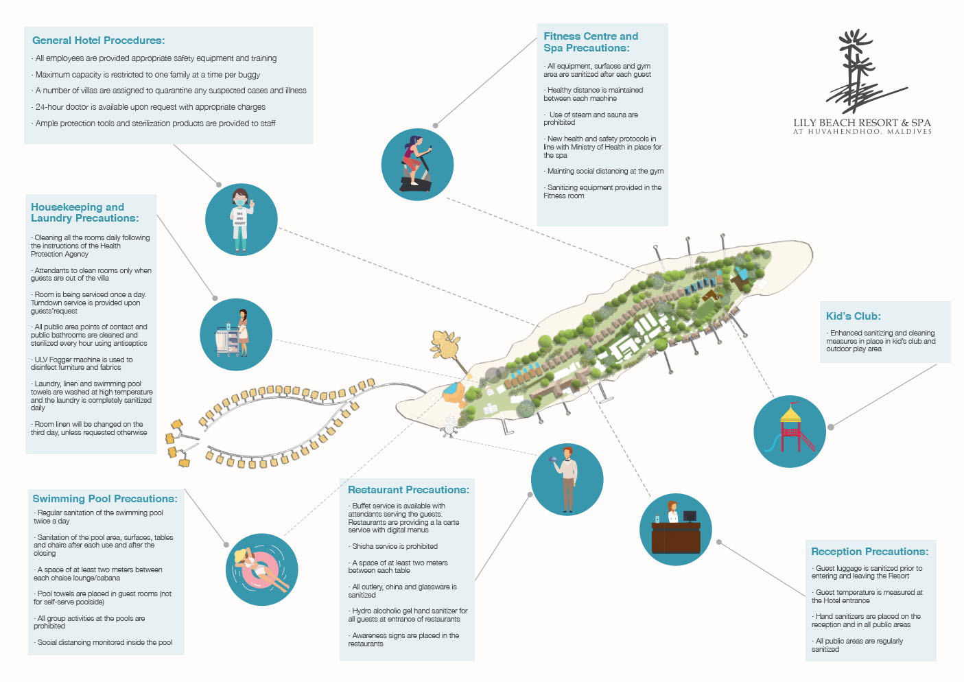 Lily Beach Resort & Spa is now a COVID-Ready Gold certified property, administered by Hotel Resilient and verified by the Maldives’ own auditing company, NSURE. Gold Certification status verifies that Lily Beach is following international guidelines, Maldives’ Health Protection Agency guidelines, industry best practices, and the latest scientific research related to the pandemic. To receive this top-ranking credential, Lily Beach had to meet each and every global standard by Hotel Resilient which included enhanced cleaning, risk controls, physical distancing, and response plans.