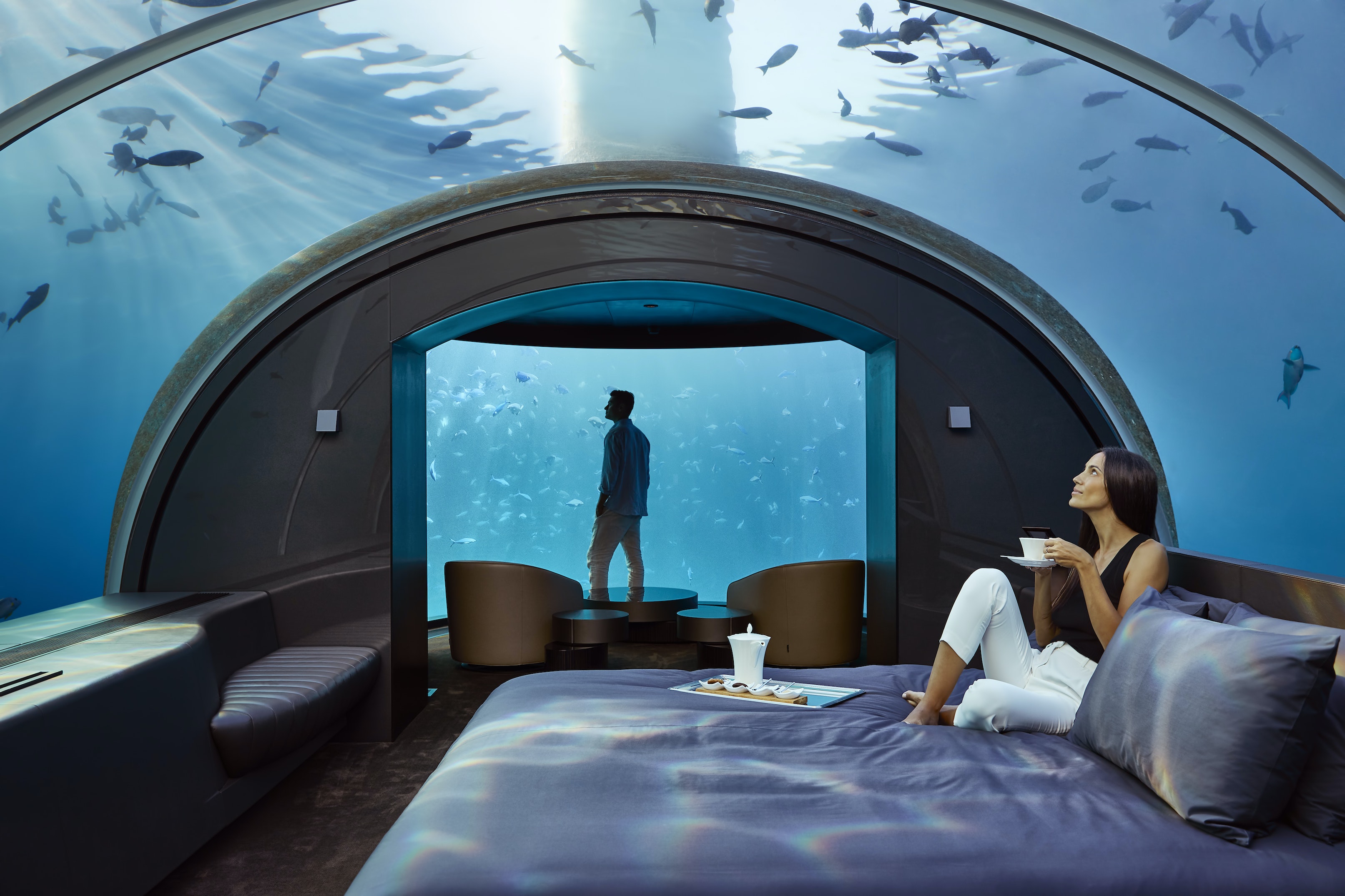 For Maldives, it does not simply stop there. Overwater villas are now considered a basic room type, and even slightly anachronistic as there’s nary a resort that does not have at least one. Resorts like Pullman Maldives Maamutaa with their “Aqua Villa” and Conrad Maldives Rangali Island have raised the bar by introducing the world’s first underwater villas. The jaw-dropping design at Conrad Maldives is named Muraka (“coral” in Dhivehi, the local language of Maldives) and sits 16 feet and 4 inches below the surface of the ocean.