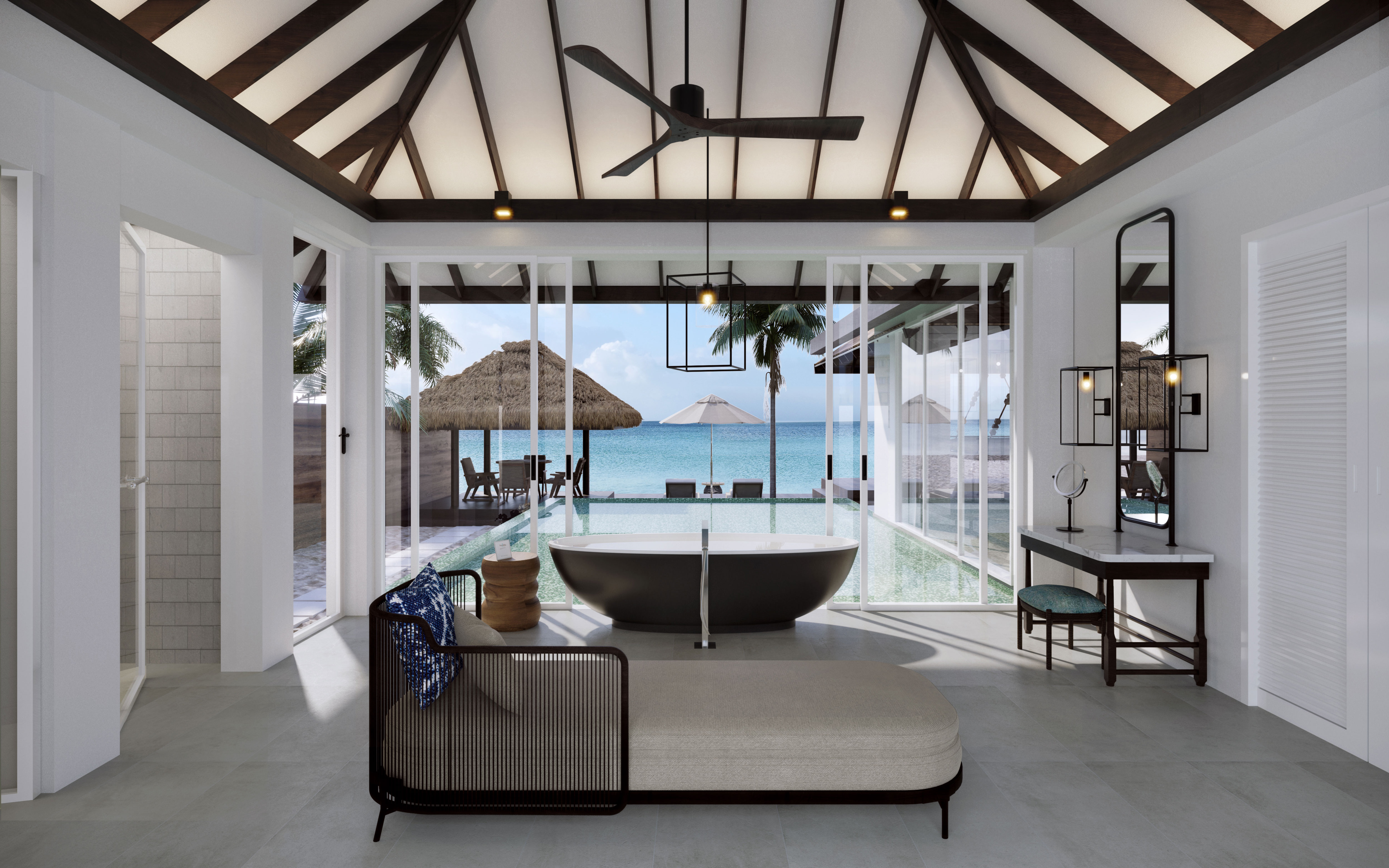 The resort’s two categories of ‘Houses’, each with 300 sqm of living space, are surrounded by tropical vegetation and invite a total immersion in nature. The Beach House with Pool has direct access to the white sands and lagoon, whilst the Ocean House with Pool and Private Beach Cabana has a large terrace with panoramic ocean view, in addition to its own dedicated cabana, where guests can relax on their super king-sized day bed and enjoy drinks, snacks or lunch served by their butler, to be known as a Kuwaanu.