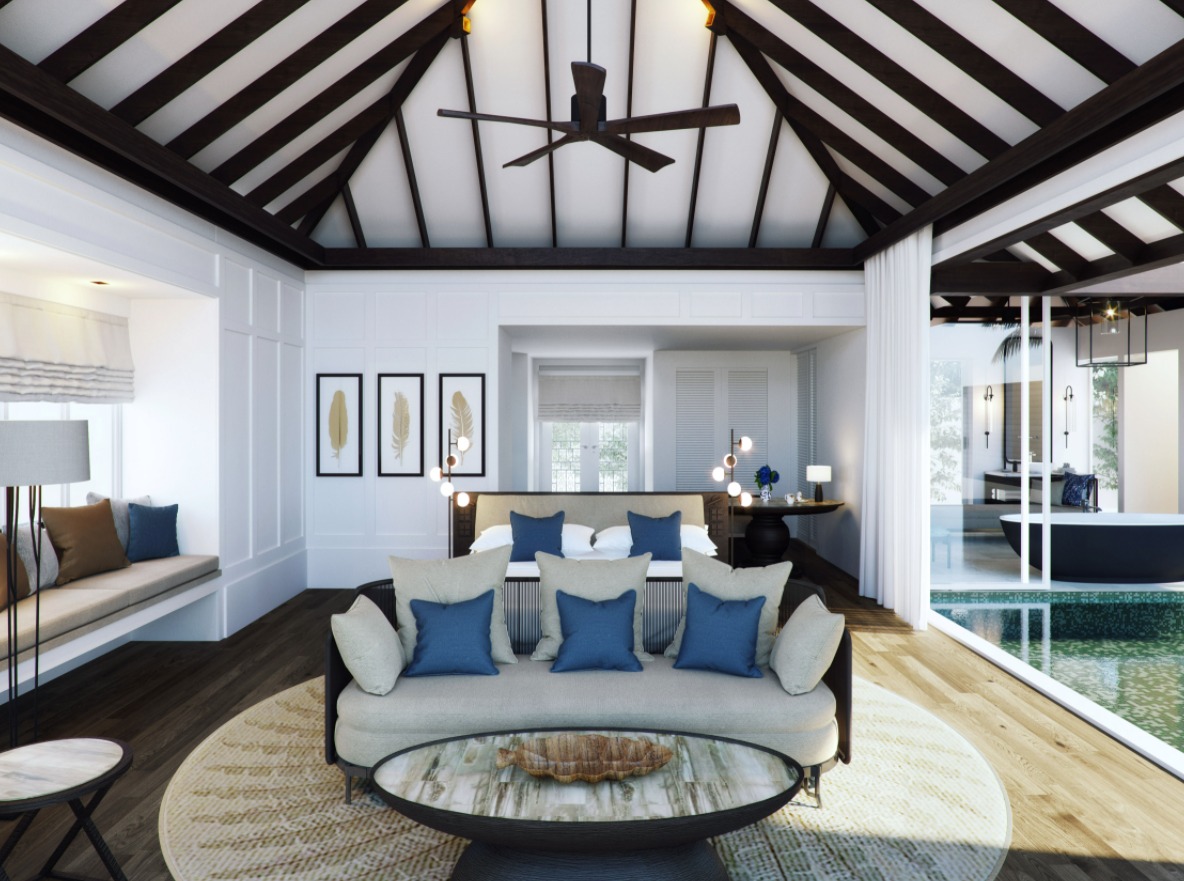 Home to just 20 keys, Naladhu offers the ultimate in privacy and seclusion for the most discerning guests. The resort is being redesigned by New York-based designer Yuji Yamazaki, with new sleeker furniture throughout and a lighter color palette creating a modern colonial South East Asian look. Yamazaki has focussed on maximizing the number of spots around the houses where guests can have a moment of pause, ranging from ocean-side seating for breakfast to pre-dinner cocktails on the chaise longue overlooking the pool. The restaurant, bar, wine cellar, and gym are among the public areas receiving a completely new look.