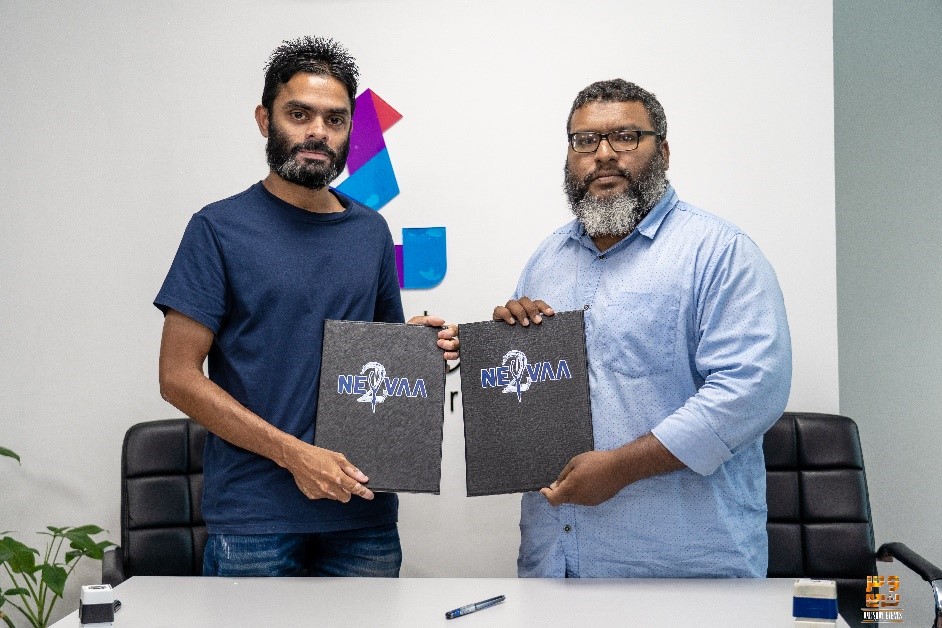 CEO Mohamed Roestali CEO signed on behalf of Jalboot Maldives, and Fathmath Nubla Latheef signed the agreement on behalf of Neyvaa 2. Jalboot specializes in delivering high quality, fully integrated marine solutions such as water transport, marina management, design and build of custom boats, watersports, and luxury charters.