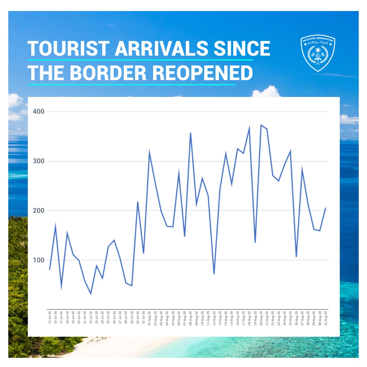 During the month of August, the Maldives has welcomed a total 7628 tourist arrivals, according to latest statistics by Maldives Immigration. This makes the total number of arrivals since border reopening on 15th July to over 9000 arrivals.