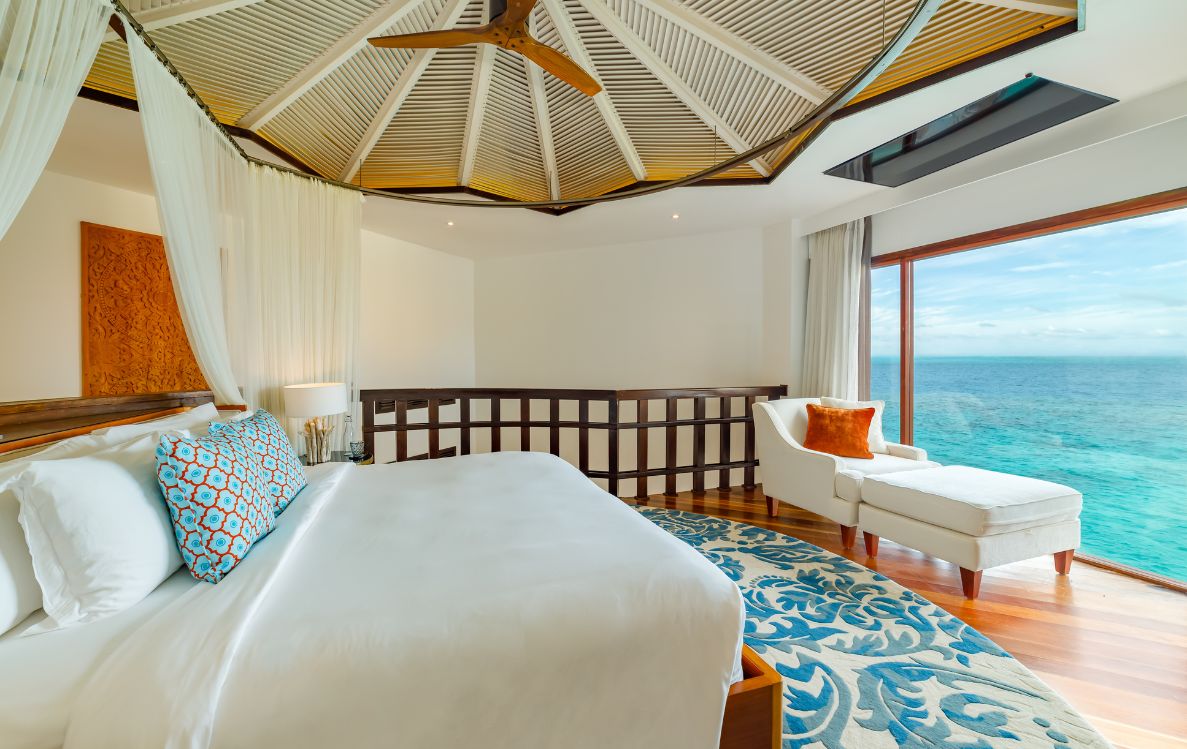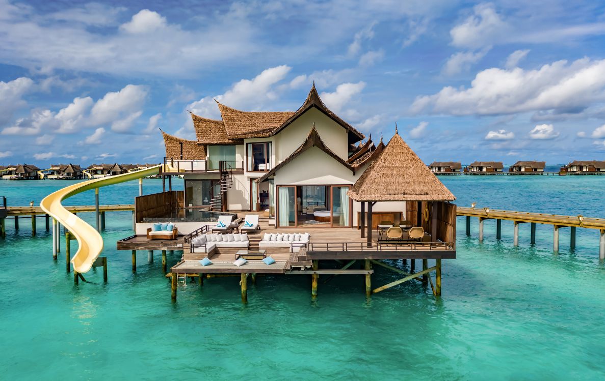 For those seeking a more tranquil escape, the Ocean Pool Suite is a serene haven, where understated elegance meets total immersion in the Maldivian seascape. Private infinity pools merge visually with the horizon, timber terraces provide the perfect vantage for sunrise coffees or sunset cocktails, and interiors are designed for ultimate comfort with spa-inspired bathrooms and plush furnishings. From sliding into the lagoon, soaking up the sun, to simply enjoying the quiet rhythm of the ocean, these over-water villas capture the perfect balance of exhilaration and serenity.