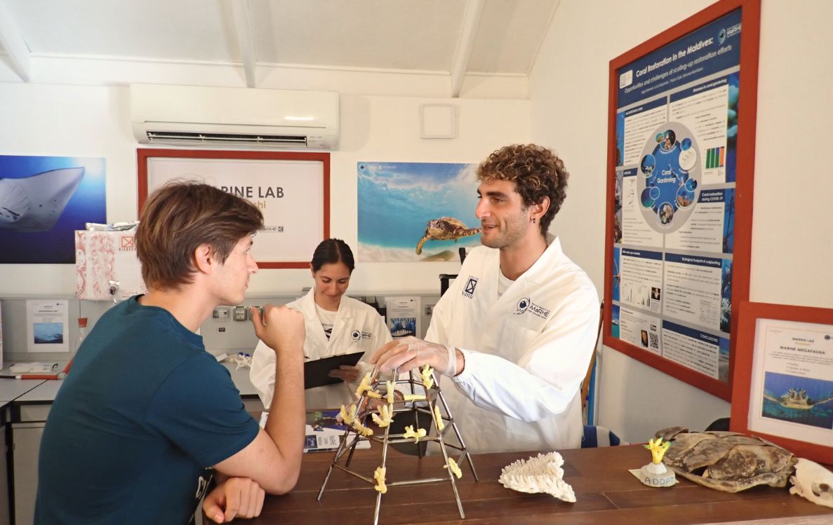 Have you ever wondered why coral reef fish are so colourful, why corals grow so slowly, or how many turtles and mantas live in the Maldives? At Planhotel resorts, guests can uncover the mysteries of the ocean by actively engaging with the marine biologist team. Each island hosts a Marine Lab, staffed by a team of two to three marine biologists who assist with daily guest activities and conduct active research on coral reefs and their inhabitants. This luxury resort setting provides the perfect opportunity to engage and educate guests on environmental topics, creating memorable experiences that last long after their stay in the Maldives.