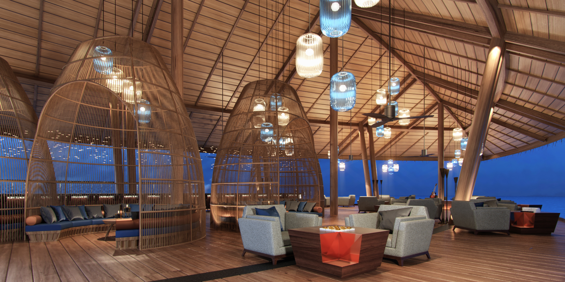 All 128 beachfront or overwater villas ranging from 215 to 790 square meters feature private pools, ocean views, state-of-the-art amenities and one, two or three bedrooms. For the ultimate getaway, the Presidential Suite promises two levels of indoor and alfresco living space overlooking the shimmering sea. Guests can explore the amazing marine world from the diving and water sports center, soothe their senses at the overwater spa and yoga pavilion, or work out at the fitness center and sports court, while the kids’ club and games room will keep young guests entertained. The glass-walled Event Hall creates an outstanding setting for life’s most special moments, including oceanfront weddings that can host up to 50 guests.