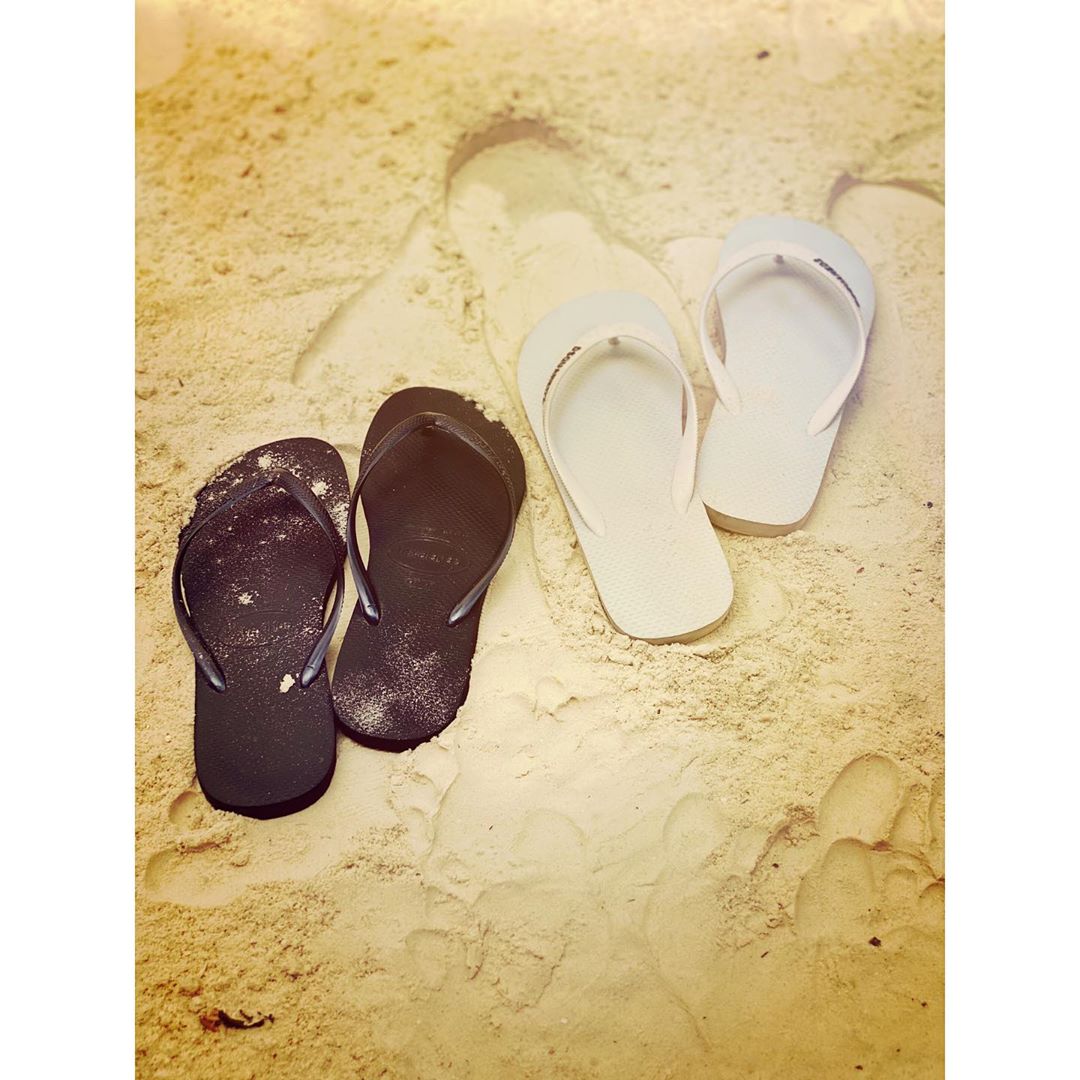 She shared another snap of what’s seen to be both their flip flops on the beach with caption *II will always lean on you to show me the way…? #his&hers #vacation”