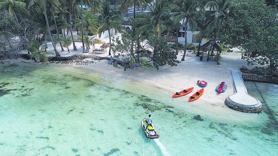 One of the first such properties to pop up in Maldives is the luxurious Veli Vilaa located in Dhiffushi Island. Nestled amongst the many coconut palms of the island, Veli Vilaa was designed to offer a unique tropical island experience to families and friends. It is a spacious 4-bedroom bungalow built on the beachfront with its own private beach where you can experience the breath-taking sunset view. This island home is equipped with all necessary water sport gears including canoes, fun tubes, banana boat and a private jet ski. Guests can also enjoy variety of  cuisines from the in-house menu at a dining area inside the villa, or even served in a romantic setting on the beach. Activities available range from watersports to excursions that could have you swimming with mantas one day or chasing dolphins the next.
