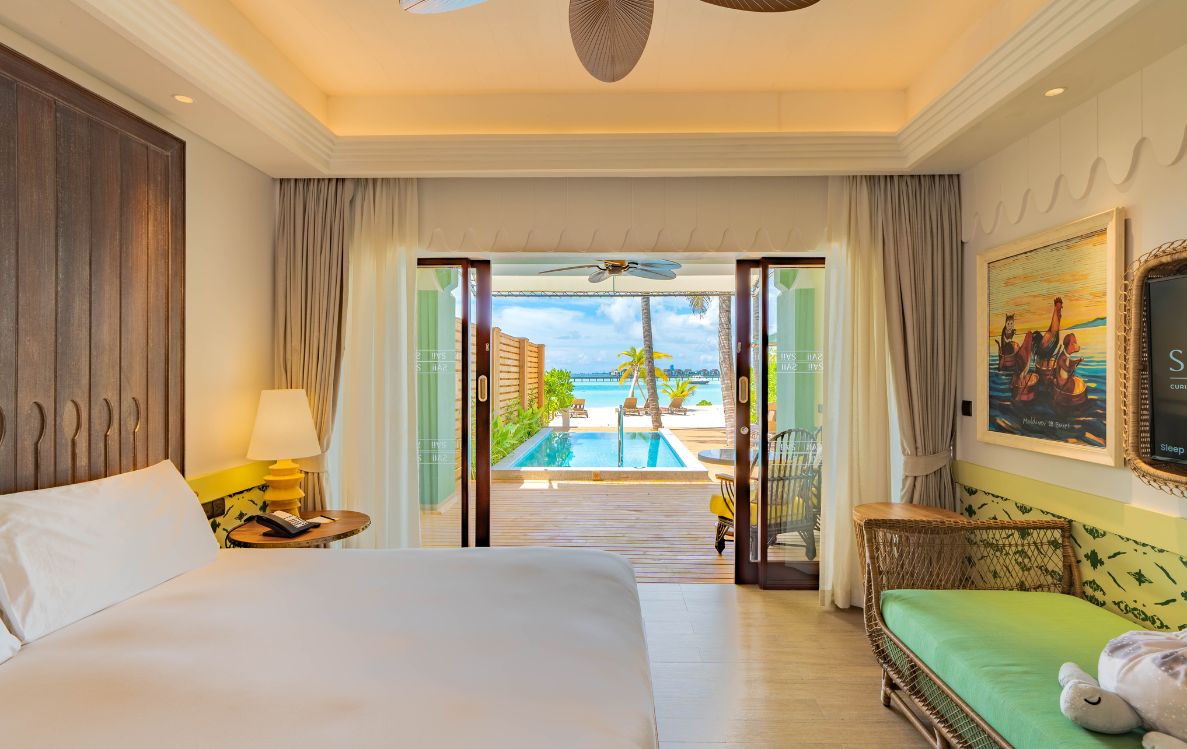 The resort features 198 contemporary rooms and villas, each designed with fresh maritime-inspired interiors. Guests can choose from beach rooms with direct sand access, elevated sky rooms with sweeping views, and indulgent overwater villas perched above the Indian Ocean. Families are well catered for with spacious beach villas, while couples can retreat to private hideaways complete with plunge pools and uninterrupted sea views.