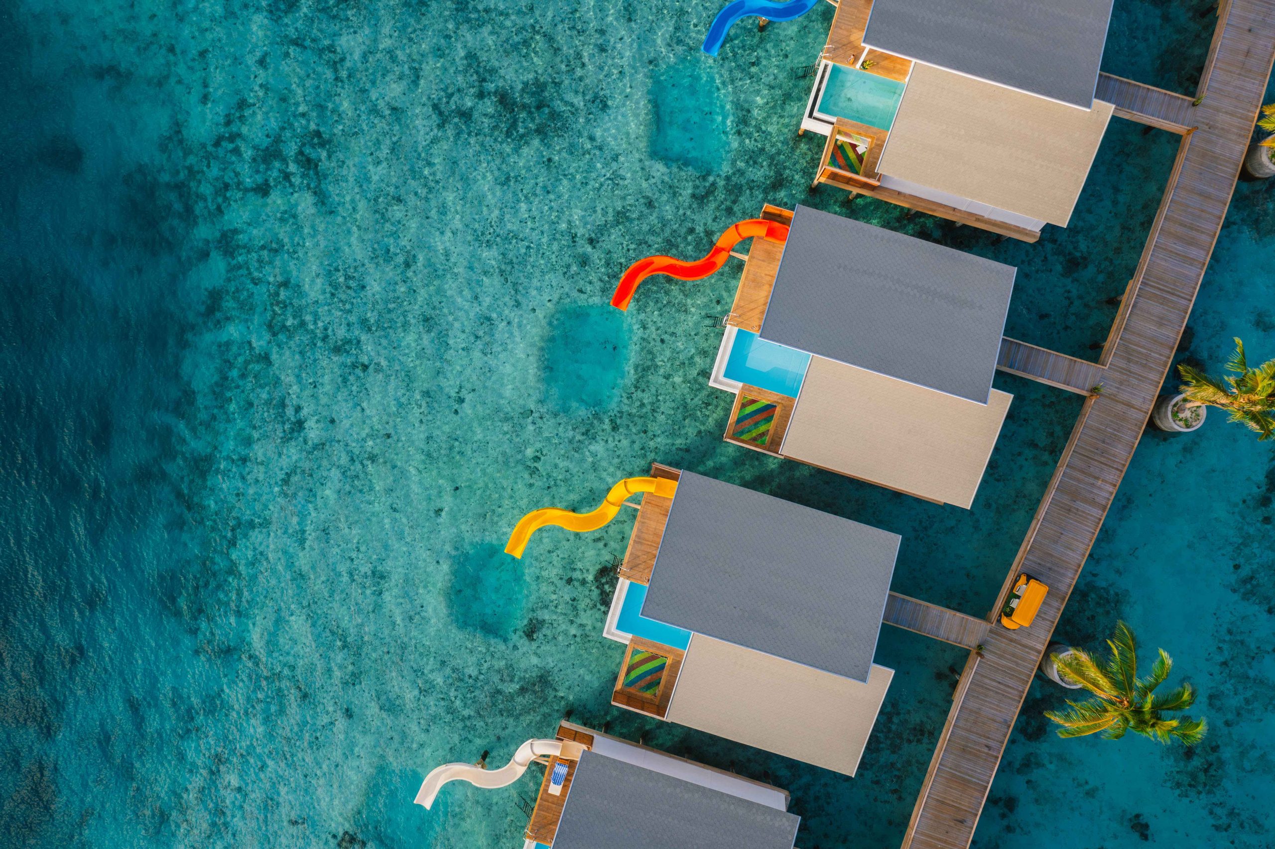 But let’s remember the sheer fun that awaits. Your private pool and slide are not mere amenities; they’re the conduits to unforgettable moments, whether you seek relaxation or a splash of adventure. Oaga offers a family-friendly water villa option for those travelling with family, presenting a villa with two spacious rooms, each thoughtfully designed for your family’s comfort.