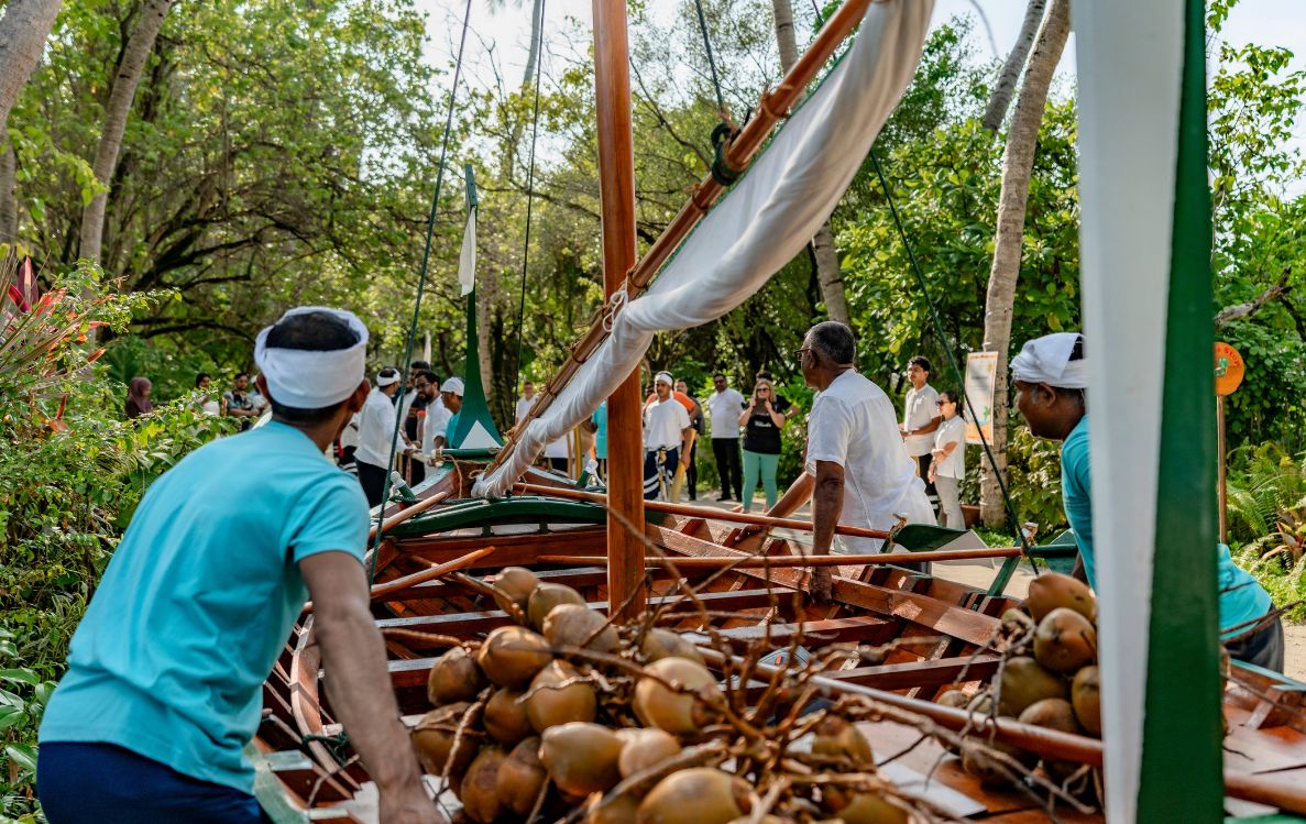 As the dhoni settled into its permanent home within the pavilion, a short storytelling session recounted its journey through time and its place in the resort’s history. The celebration continued in true Maldivian spirit with local delicacies refreshing island juices, and freshly opened coconuts shared among guests and associates, as laughter and conversation filled the air.