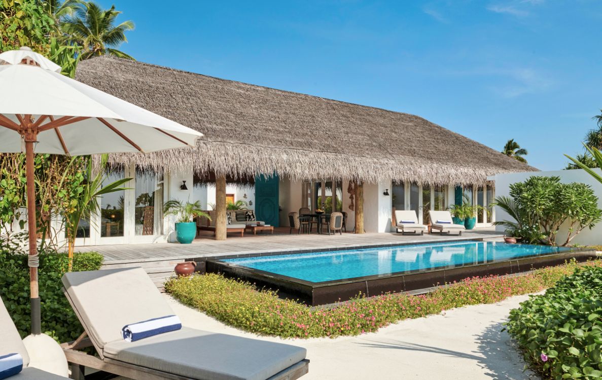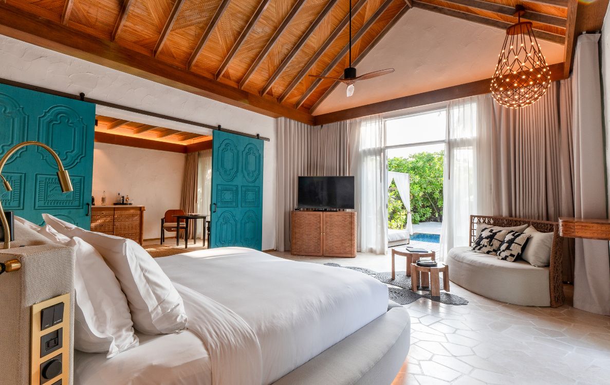 The resort’s Beach Villas are a perfect blend of barefoot luxury and sustainable design, offering guests a chance to reconnect with nature while enjoying world-class comfort. Among the most sought-after options is the Sunrise Beach Villa, where guests can begin each day with views over the lagoon, enjoying moments of peace and tranquillity in a spacious indoor and outdoor environment, complete with a private pool. Similarly, the Sunset Beach Villa, set directly on the soft sands, offers a sanctuary of luxury with a private outdoor pool and stunning sunset views – an idyllic setting for relaxation after a day of exploration.