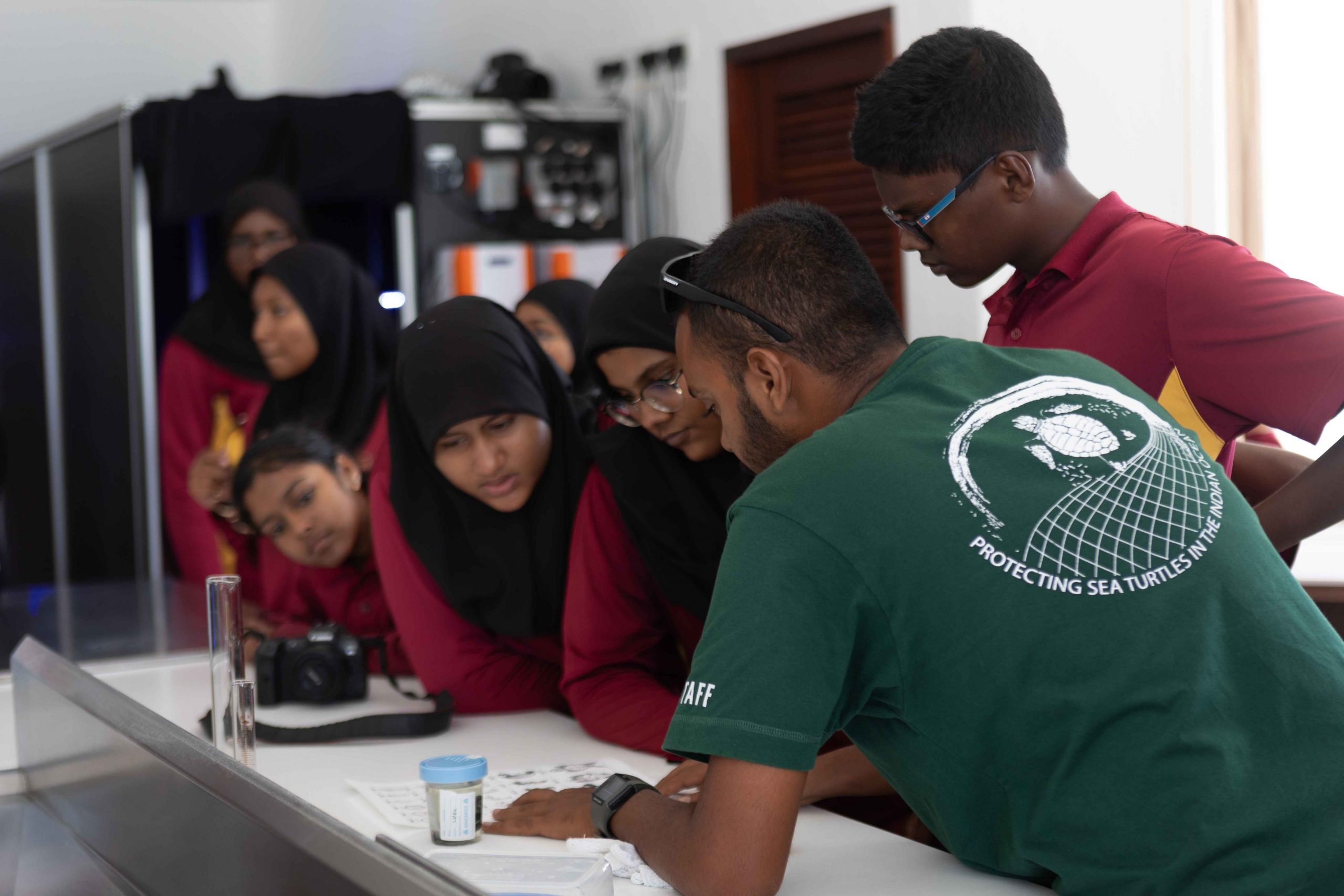 Beyond research, the SHELL serves as a space for exploration and education. Six Senses Laamu has welcomed over 300 community members to the SHELL over the past year. A key initiative, the “Hello Hallu” program, was designed to inspire and motivate students to actively participate in preserving their local ecosystems. The program achieved widespread impact by reaching every school across Laamu Atoll, engaging 237 students in total. Together with the MUI team, students explored the habitats of Laamu, including mangrove forests, seagrass meadows, and coral reefs, as well as sustainable fishing practices and megafauna.