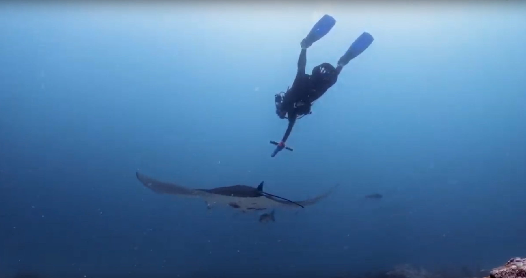 IMV Imaging’s Duo-Scan: Go Oceanic is the first-ever technology to allow contactless scanning of wild marine animals at depths of up to 98.5 feet (30 meters), while also being portable (the dive rig weighs less than 4.5 pounds (2 kilograms). The aim of bringing this technology to Laamu was to scan wild pregnant reef manta rays in order to study gestation and embryonic development.