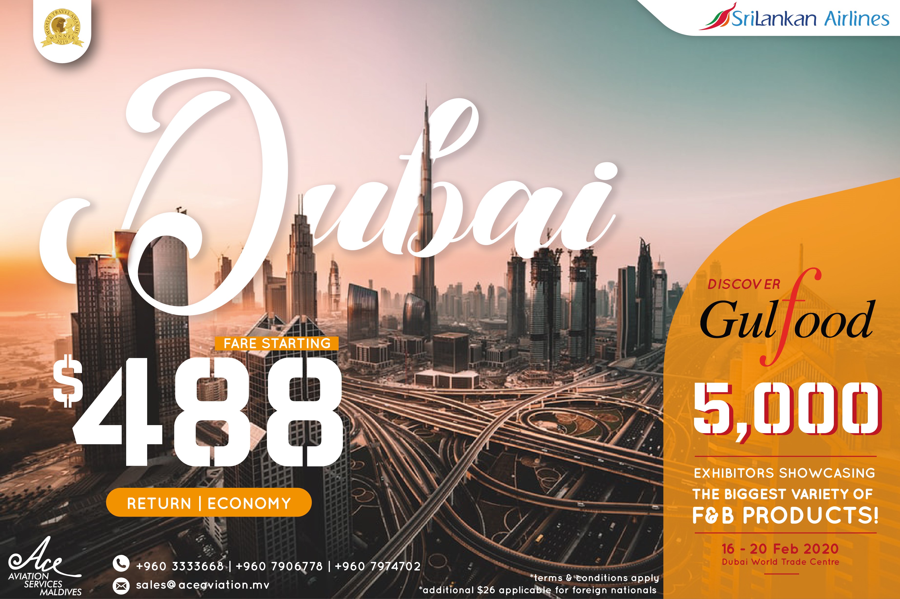 Ace Aviation Services Maldives, the general sales agent for Sri Lankan airlines has introduced a promotional fare to Dubai.