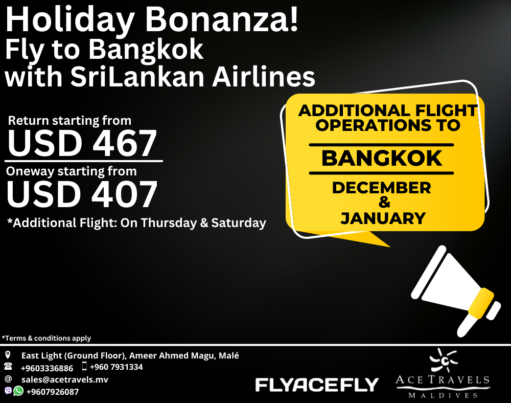 SriLankan Airlines has introduced additional flights to Bangkok, Thailand for the peak season.