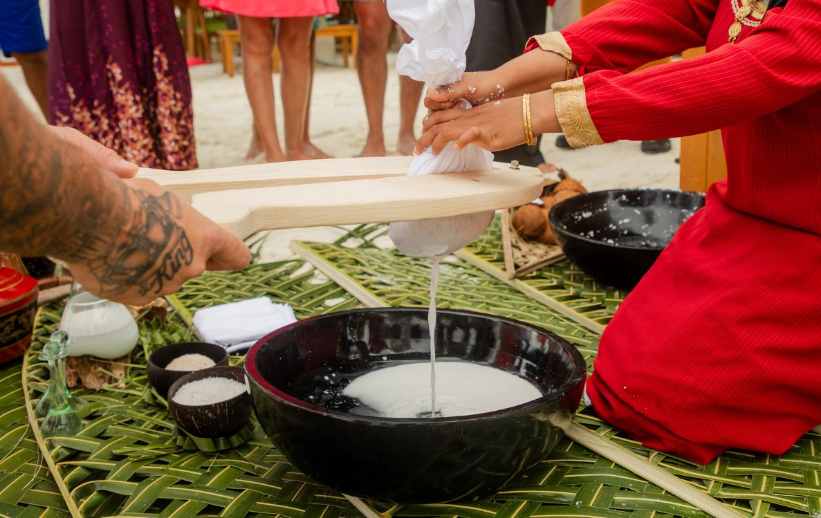 Engaging in coconut oil making at Sun Siyam Iru Veli served as a unique opportunity for guests to learn about the numerous health benefits associated with coconut oil. In addition to its culinary uses, attendees gained insights into the holistic advantages of incorporating coconut oil into their daily lives, both in cooking and as part of a skincare routine.