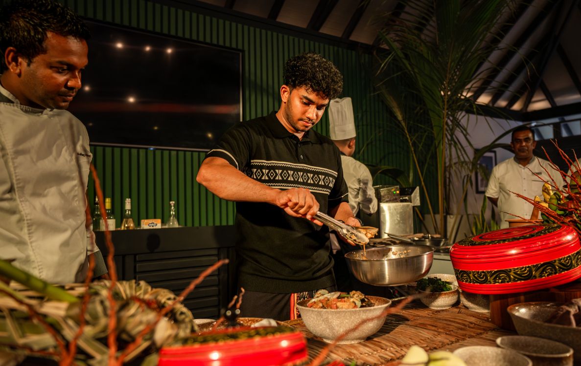 The celebrations continued on the 24th of November with an exclusive live cooking demo by Charith, where guests experienced his wild style of cooking up close, set against the resort’s lagoon backdrop.