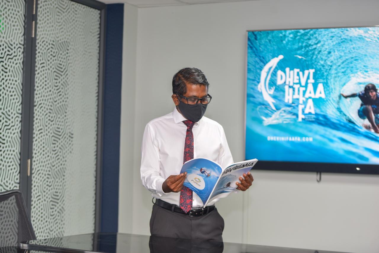 The first local surf magazine “Dhevi Hifaafa” was launched at a special ceremony held at the Head Office of the Maldives Marketing and Public Relations Cooperation (MMPRC). The Magazine was launched by Mr.Thoyyib Mohamed, Managing director of MMPRC.