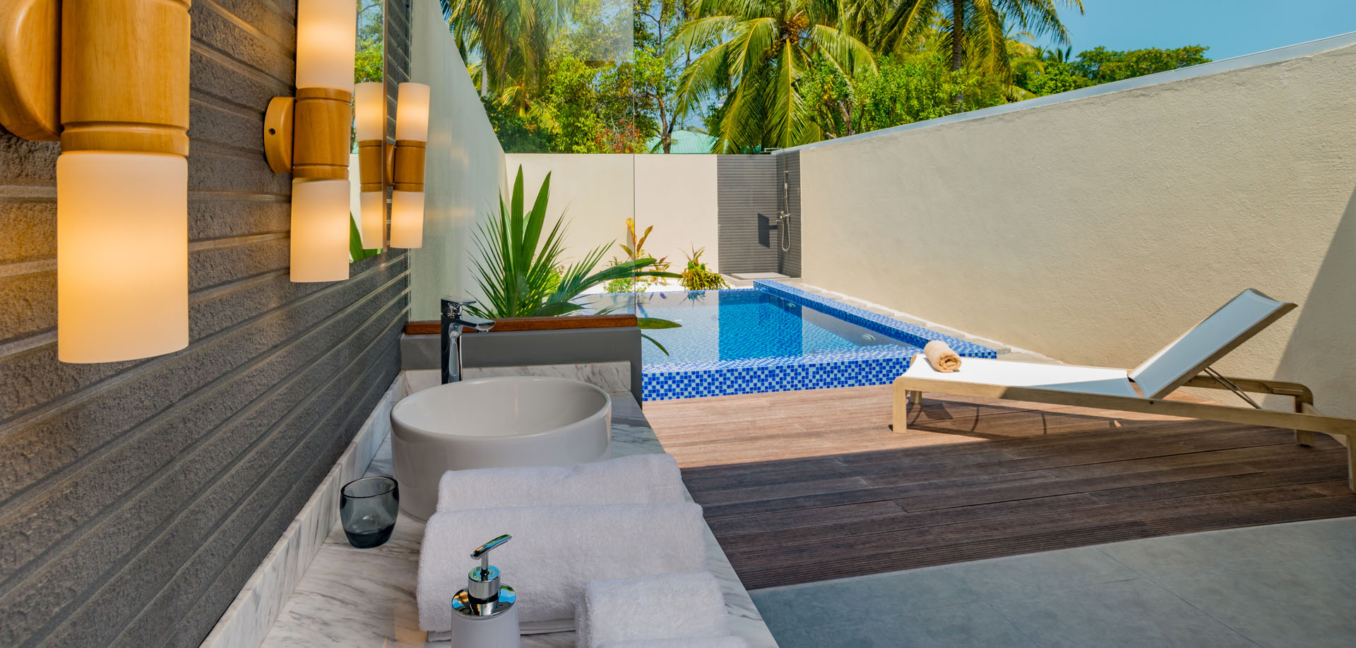 Fiyavalhu will open with 44 Villas of five different categories and, upon completion, will operate with 100 Villas. All five Villa (Garden Villa, Deluxe Garden Villa, Beach Villa, Deluxe Beach Villa & Pool Villa) categories are decorated in warm earthy tones of greys and tanned woodworks in harmony with the island’s natural environment. All guest Villas has wardrobes, an air-condition, ceiling fan, a mini-fridge, hairdryer, bathrobes, slippers, and a safe: Wi-Fi, LCD Television, and telephone. Cots or cribs, iron, and ironing board are available upon request at no additional charge.