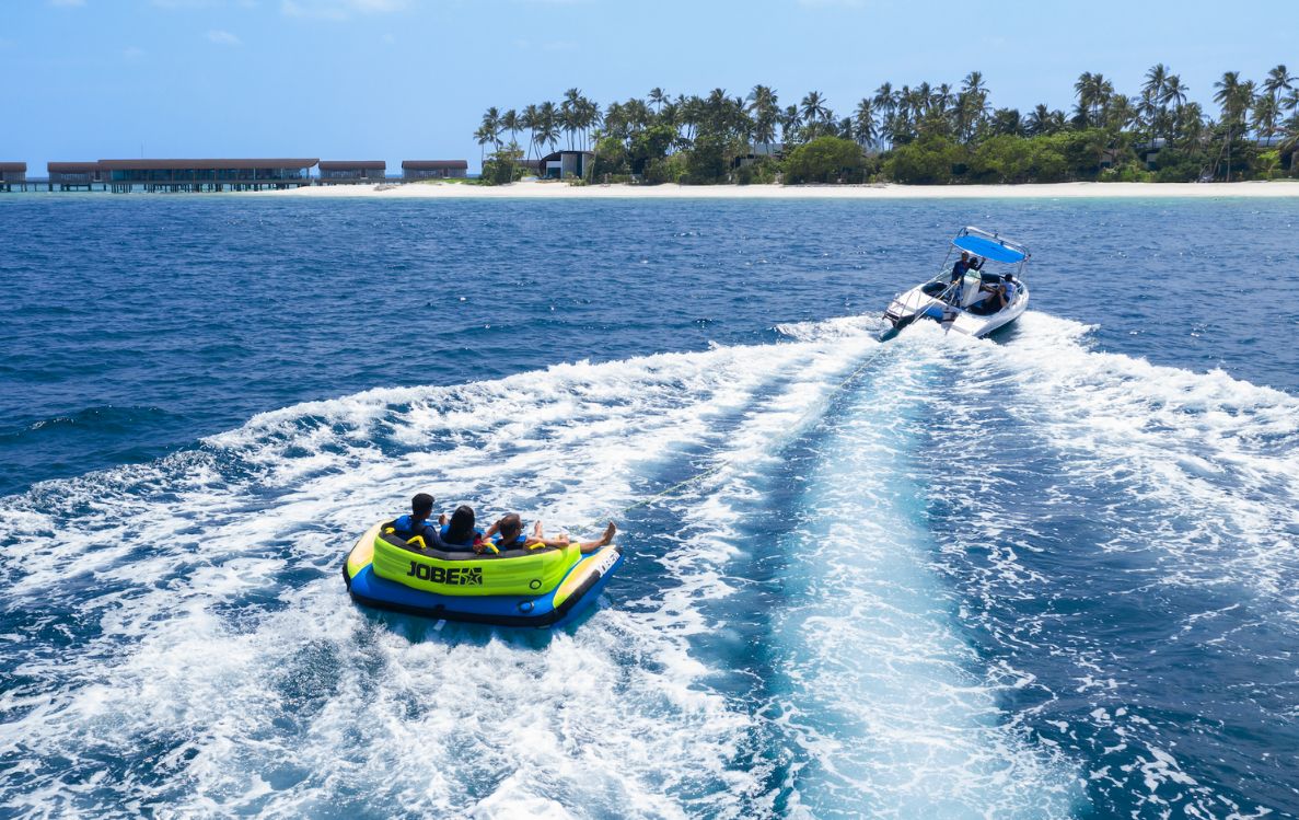 The package invites guests to discover the vibrant marine life of Baa Atoll on a private turtle snorkelling excursion, where sea turtles glide through the picturesque underwater world. Guests can explore Brother Island, where thriving coral reefs shelter reef sharks and colourful fish. For those seeking a more leisurely experience, the resort’s dolphin cruise provides a magical opportunity for families to witness these playful creatures in their natural habitat. Watersport enthusiasts can embark on exhilarating rides, while those seeking a more tranquil adventure can enjoy complimentary ocean kayaking through the island’s crystal-clear waters.