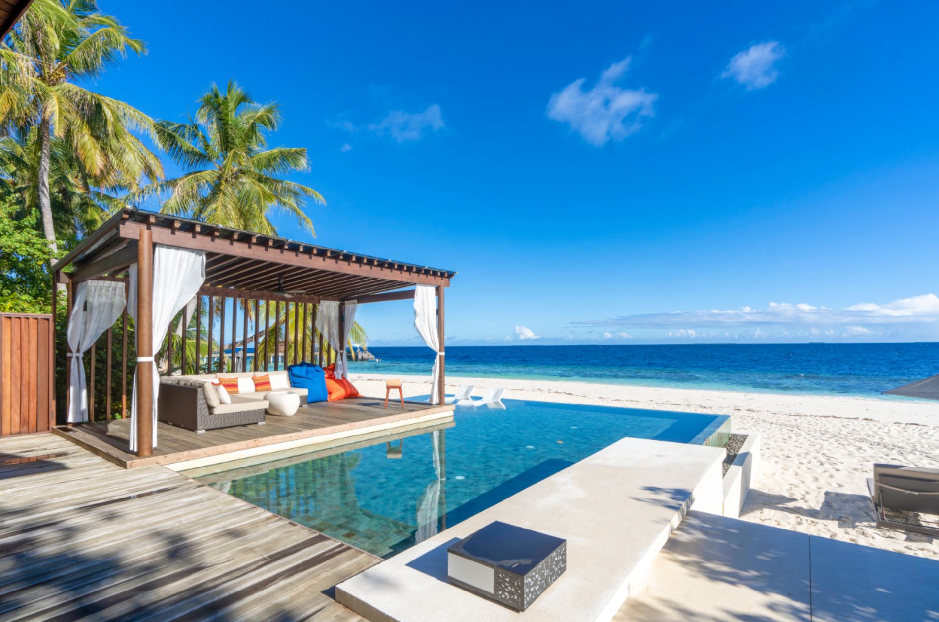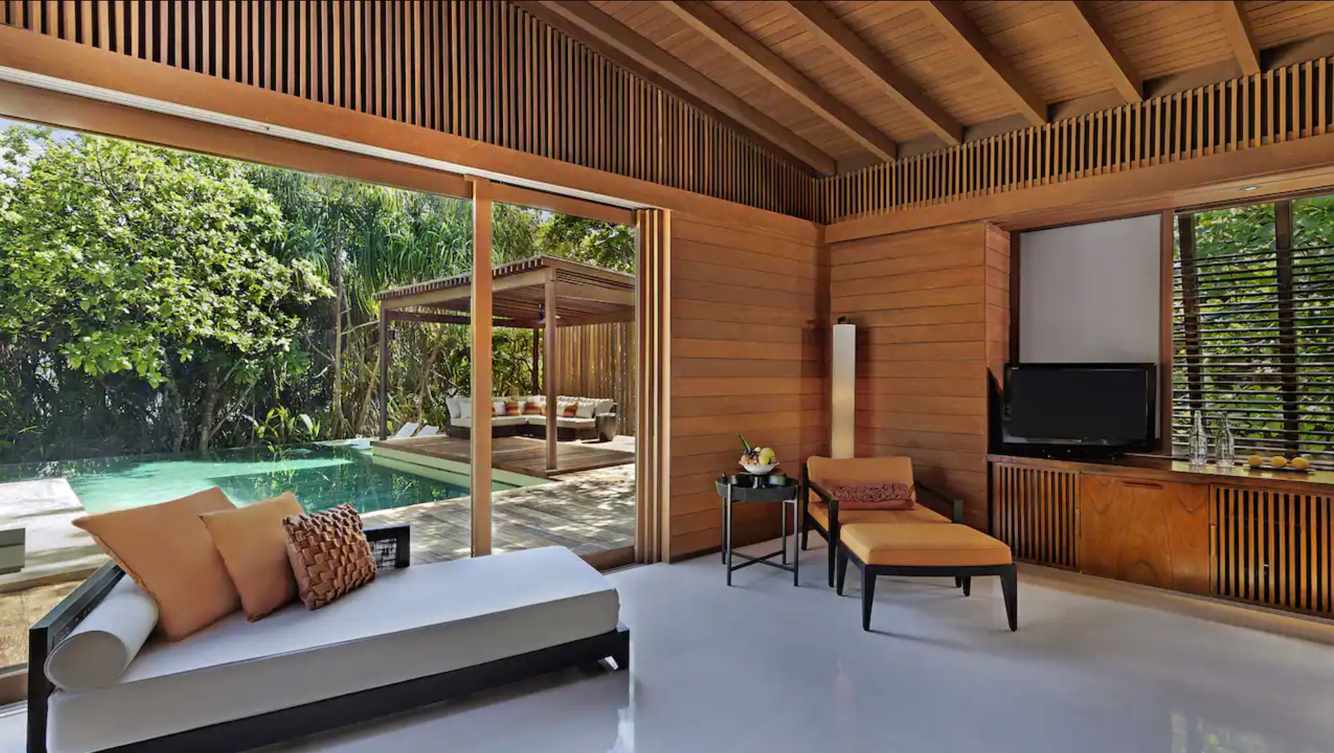 All beach pool villas are fitted with a king bed, chaise lounge overlooking a private plunge pool and deck, indoor and outdoor shower area with terrazzo bathtub and rain shower area with direct beach access.