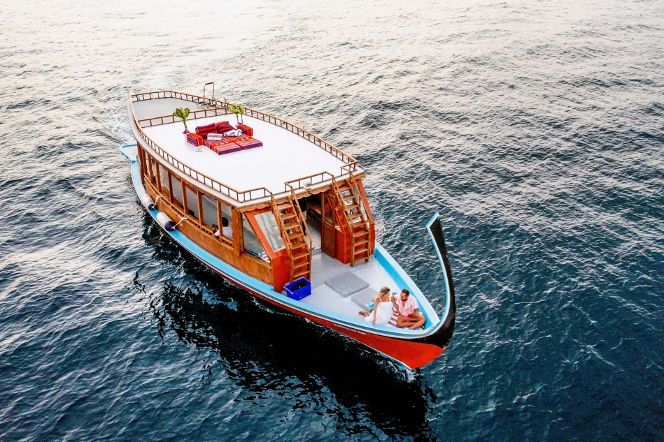 Before you start your adventures at Hideaway Beach Resort & Spa, make sure to board a traditional Maldivian boat called Dhoni and witness the breath-taking sunrise and spectacular views with your loved ones while on a leisurely romantic cruise.