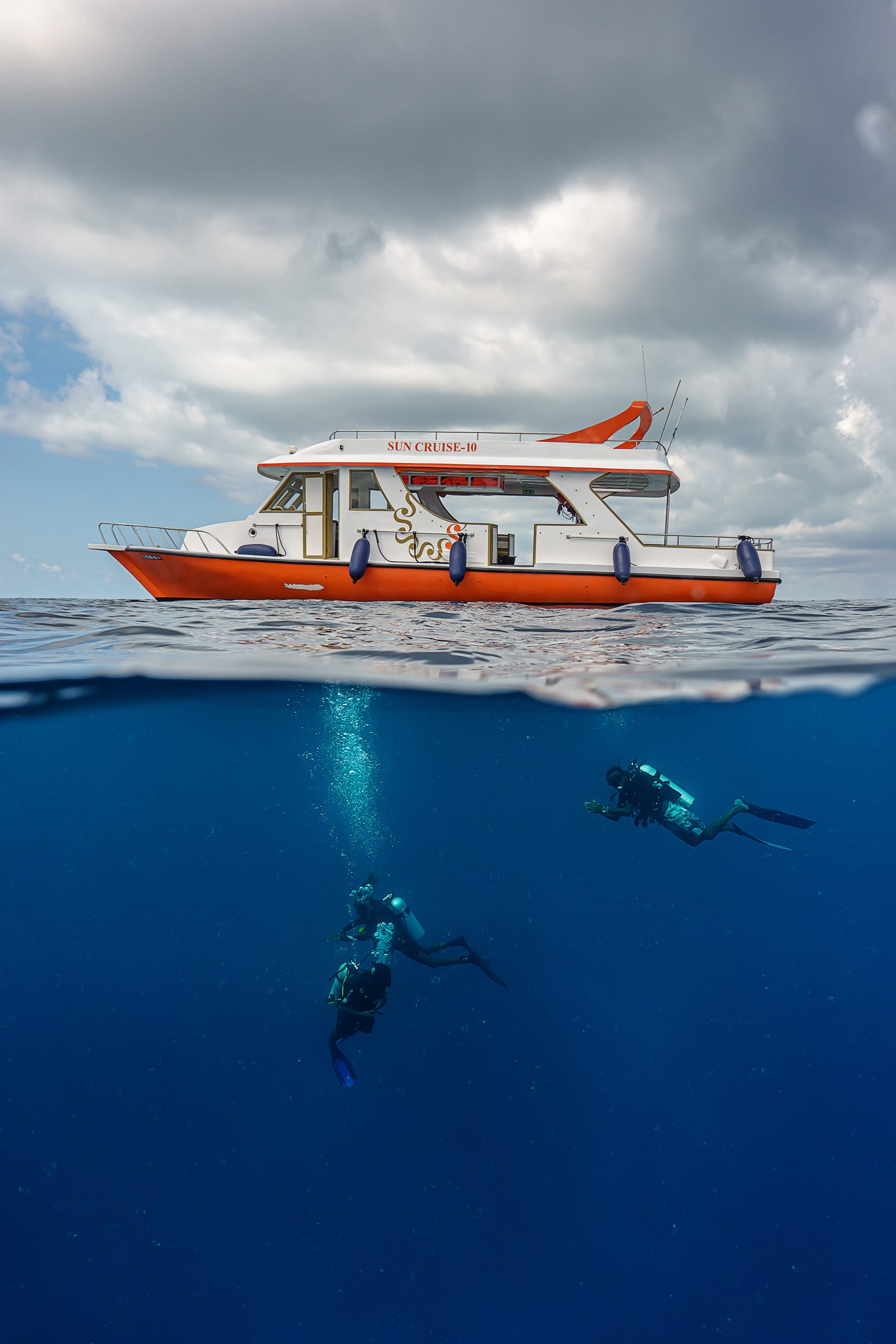 At Sun Siyam Olhuveli, diving immerses you in a world of natural beauty that few have the privilege of experiencing. With easy access to the resort’s house reef, which is teeming with vibrant marine life, your underwater adventure begins just steps from the shore. The resort’s SSI-certified Dive Centre offers expert guidance for divers of all levels, from beginners to seasoned adventurers. If you’re new to diving, the “Try Scuba Diving” experience is the perfect way to ease into this underwater world, with a shallow dive at the house reef where you’ll encounter colorful fish, delicate corals, and even the occasional sea turtle.