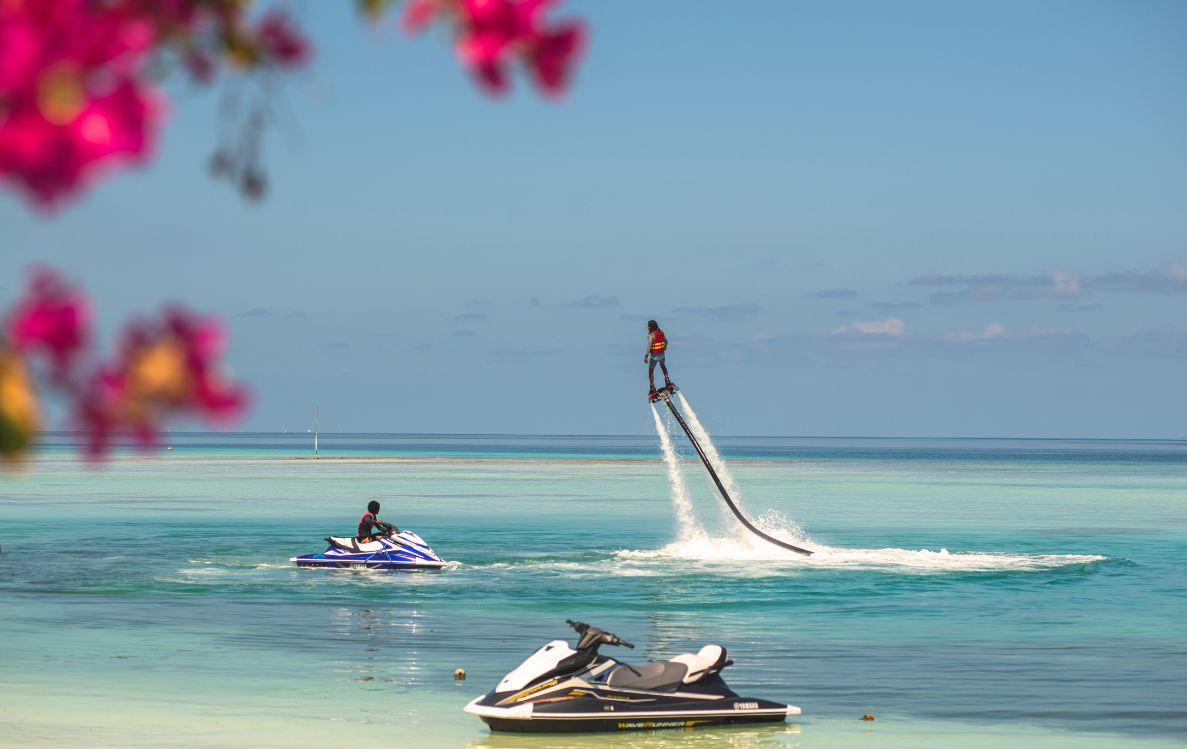 For the ultimate thrill, the Jet-Ski Safari Experience invites you to explore the Maldives’ pristine waters in an exhilarating way. Chase playful dolphins, snorkel through vibrant coral reefs, or head to secluded sandbanks for a serene escape. Flyboarding takes it to the next level, offering the sensation of flight as you soar above the lagoon powered by water jets. Each experience is designed to leave you with lasting memories, ensuring your stay at Sun Siyam Olhuveli is nothing short of extraordinary.