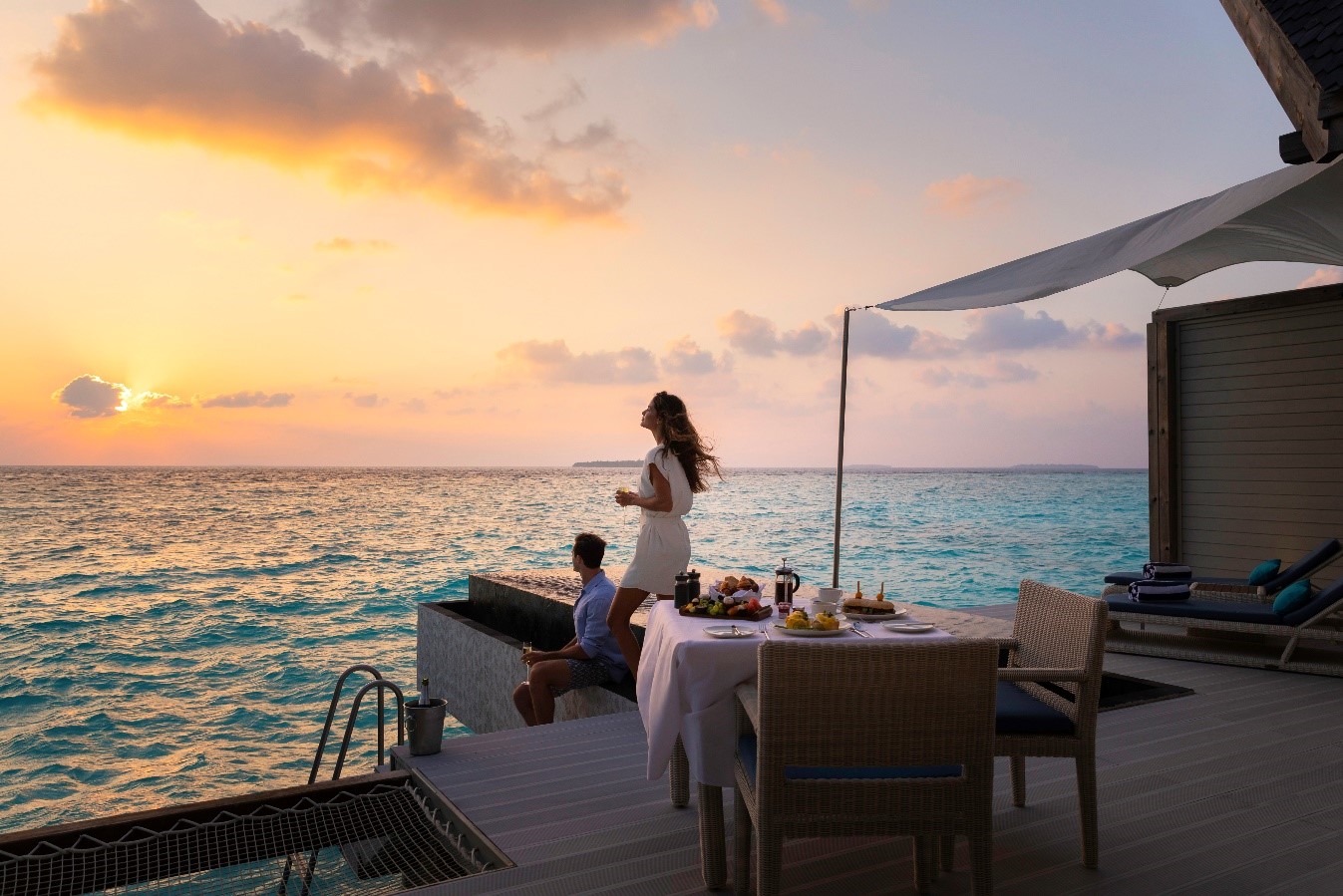 All of the luxury accommodations – Overwater Pool Villas, Beach Pool Suites, and Beach Spa Pool Residences – include a spacious outdoor lounging area with a private plunge pool, offering a deep sense of relaxation and allowing guests to embrace the natural beauty of the Maldives in their own tropical surroundings.