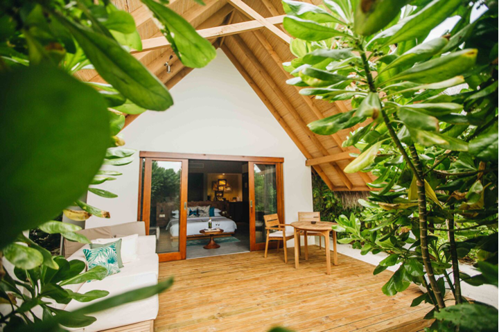 Your private beach duplex villa offers the luxury of space and outdoor rain showers that let you go au naturel in nature, all while being tucked away amongst the lush tropical foliage and only steps from the ocean. A shared living room with sunrise views connects a beach villa and pool beach villa with modern amenities to make this a truly special getaway.