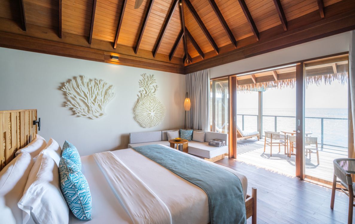 Set above the calm lagoon, these villas offer a serene retreat with expansive ocean vistas. Each 85 m² villa features a spacious private terrace, ideal for unwinding while soaking in sweeping views of the crystal-clear lagoon. With private staircases leading directly into the lagoon, guests can dip into the warm, inviting waters of the Maldives.