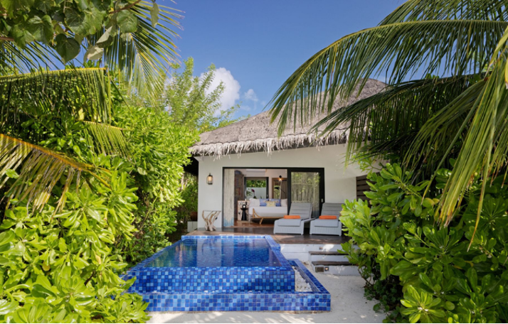 You can unwind with the lush greenery, beach, and calming sounds of the waves while sunbathing or soaking in the plunge pool while the Lifestyle Hosts welcome you upon arrival and ensure you get the most out of their time in the Maldives through the signature services of Grand Park Kodhipparu.