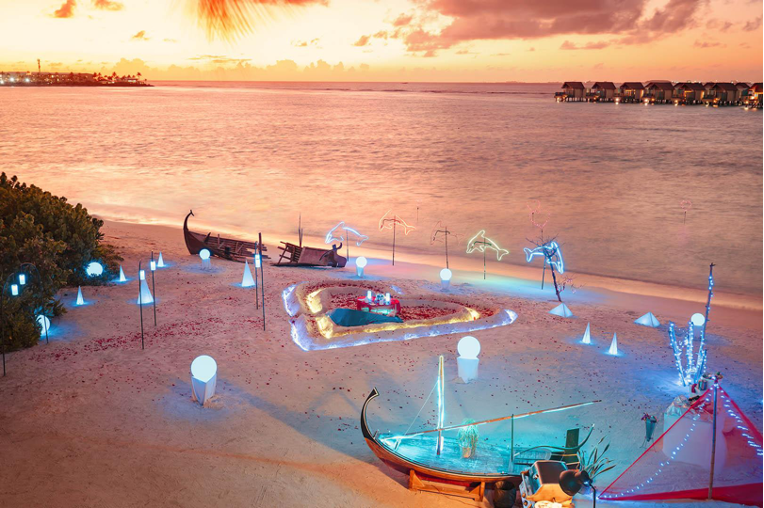 A unique and unforgettable dining experience where guests can indulge in a private beachside dinner amidst the breathtaking natural beauty of the Maldives. The unique table, shaped like a heart or a guitar, pays homage to the resort’s musical heritage. Delight in the finest Maldivian cuisine, highlighting fresh seafood and local ingredients. This is the perfect dining experience for couples looking for a romantic night out or for anyone looking to celebrate a special occasion.