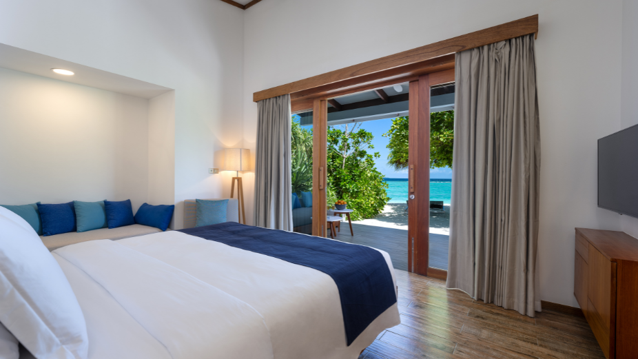 Designed with vibrant ambience and comfort in mind, the Sunset Beach Villa with Pool features spacious and elegantly furnished interiors. The villa’s prime beachfront location offers direct access to the pristine white sands and shimmering waters of the Maldives.