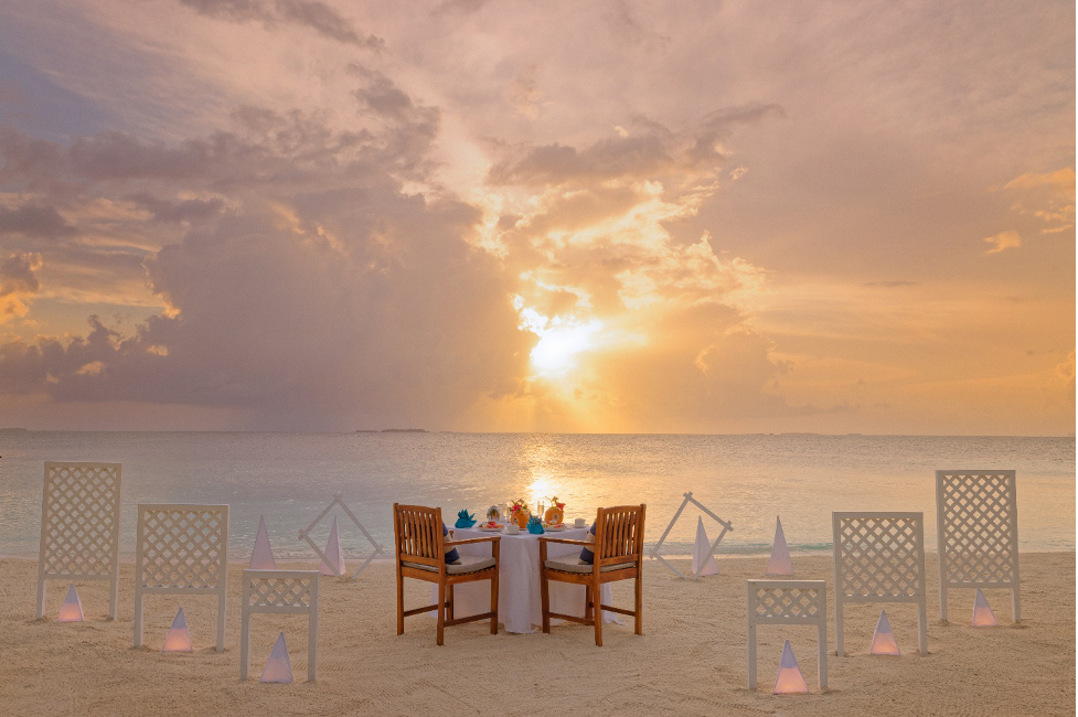 The resort offers a variety of activities for any time of day. Early risers can greet another gorgeous day on the white sand beach as the sky transforms into a colorful scenic artwork in front of their eyes. Guests staying at Pool Villas can also add an Instargam-worthy floating dining experience to their stay. For more of their private dining experiences visit: https://www.parkhotelgroup.com/north-male-atoll/grand-park-kodhipparu-maldives/private-dining