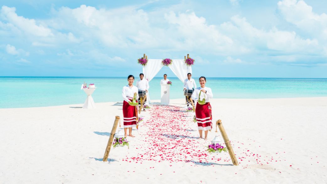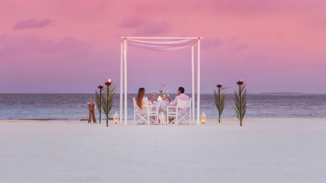If you ever leave the comfort of your villa, you’ll find an array of exciting resort experiences, and your butler stands ready to cater to your every whim, ensuring your honeymoon is a seamless symphony of unforgettable experiences. Six alfresco restaurants, two bars, and a wine cellar serve a range of international cuisines in idyllic settings. At the same time, the opulent over-water Merana Spa refreshes and relaxes the body, mind and soul with an extensive list of indulgent experiences. Other romantic dining experiences can be customised according to your preference – by the beach, on the secluded sandbank, on a luxury yacht, or even in the middle of the jungle and in the Organic Garden. Each activity is crafted to enrich your stay with memorable experiences.