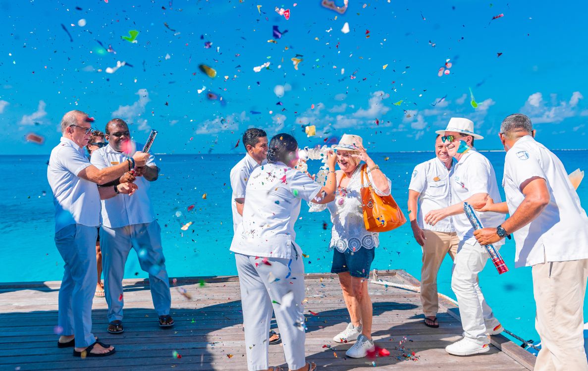 What keeps bringing them back? For Dr. Klein, it’s the perfect blend of relaxation and care. “Back in Switzerland, my job is to look after others. At Velassaru , I am the one being taken care of. Here, I am able to fully recharge my batteries, ” he says. From the moment they step off the plane, they feel the warmth of a place that truly speaks to them. This year’s golden anniversary was particularly special with a celebratory welcome at the airport, thoughtful gifts like a sun hat and golf shirt inscribed with special Dhivehi messages, and even their own golf buggy to get around the island.