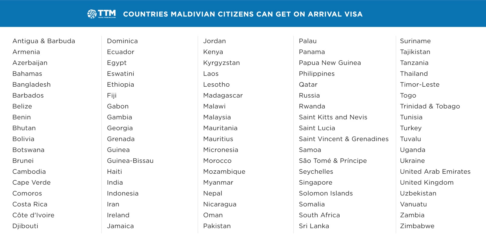 Ministry of Foreign Affairs, Maldives recently signed visa waiver agreements with the Kingdom of Morroco, Russia, and Thailand, making the total destinations for Maldivian citizens to get on arrival visa to reach a total of 90 countries.