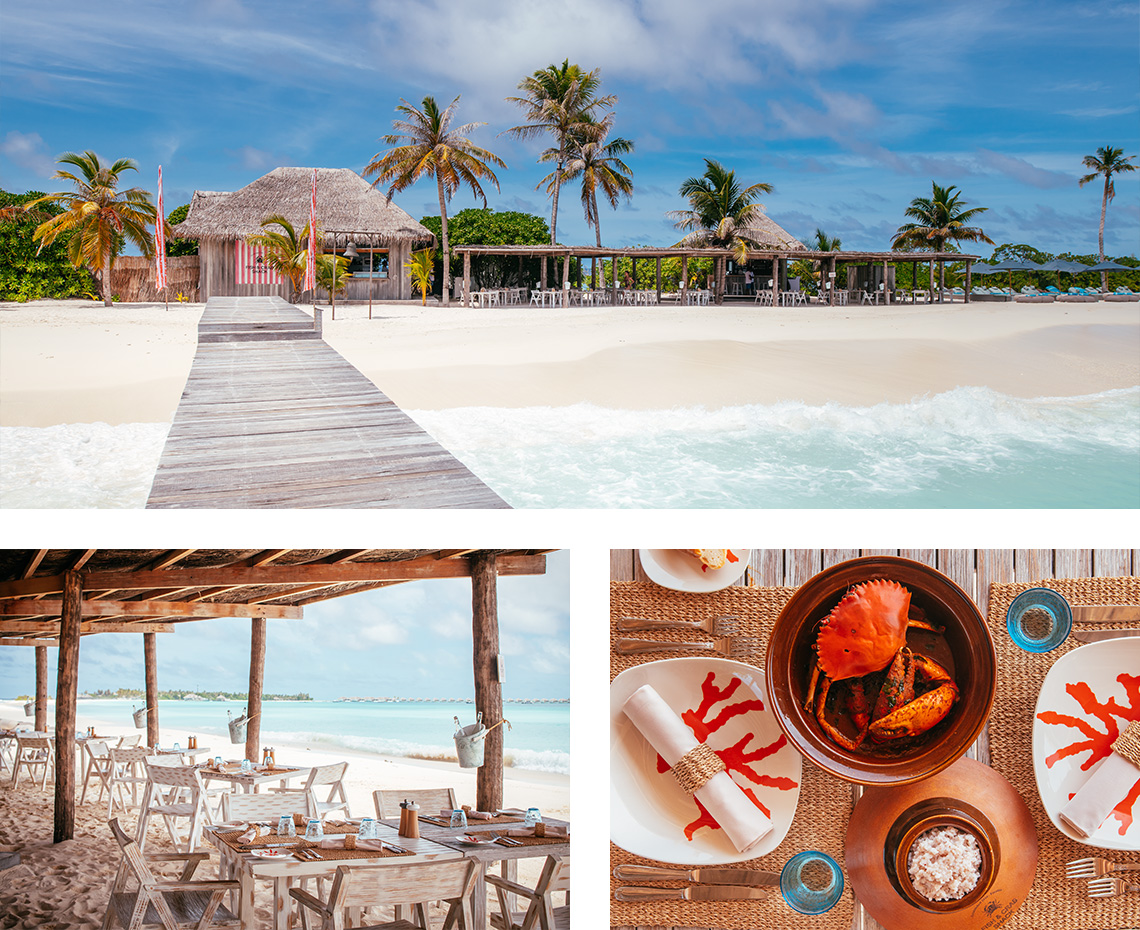 The Crab Shack at Seaside Finolhu offers a simple rustic laid back setting, a surrounding hard to find anywhere else. Walk down the sublime sandbank to reach there. Enjoy sand between your toes and devour every bit of the tastiest dishes once you’re there.