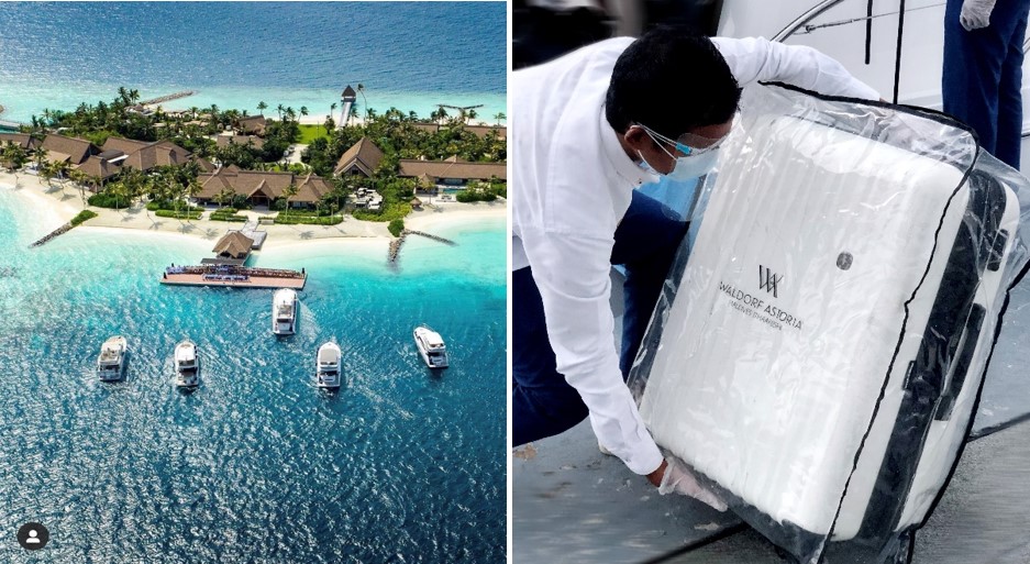 Waldorf Astoria Maldives Ithaafushi has the biggest luxury yacht fleet arranged for every arrival and departure guests, which is incomparable with any other luxury resort in the Maldives. The fleet has six luxury yachts which include a Majesty 70 the biggest private luxury yacht in the Maldives, comprises of lavish interiors and bedroom for guests to relax and enjoy after long haul flights. This luxury yachts transfer and curated amenities makes every guest first and last impression unforgettable. It surely would make every moment worth it, and memorable. During the rainy days, luggage is covered with special protectors, which makes the guest feels that none of their valuable belongings is soaked wet while loading and unloading to the yachts. This would make it convenient for the guests to be boarded into their luxury yacht even in the rainy weather.