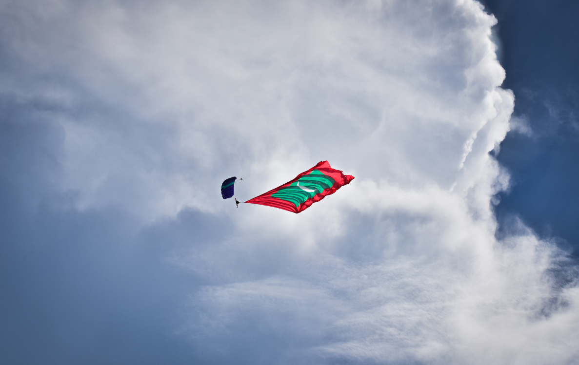An all-star lineup of skydiving champions, world record holders and aerial athletes performed a series of daring stunts to mark the official launch. Professional skydiver, base jumper and wingsuit pilot Fred Fugen – famed for his exhilarating stunts with Red Bull – took to the air with his wife Laurence Fugen to perform an array of stunts, including wingsuiting their way down to earth with a skydiver upon each of their backs; while Australian skydiver Richard Pym flew a record-breaking 300m2 Maldivian flag and a 300m2 Ifuru Island flag through the skies during two impressive jumps that captivated a rapt crowd of dignitaries and resort guests on the private island.