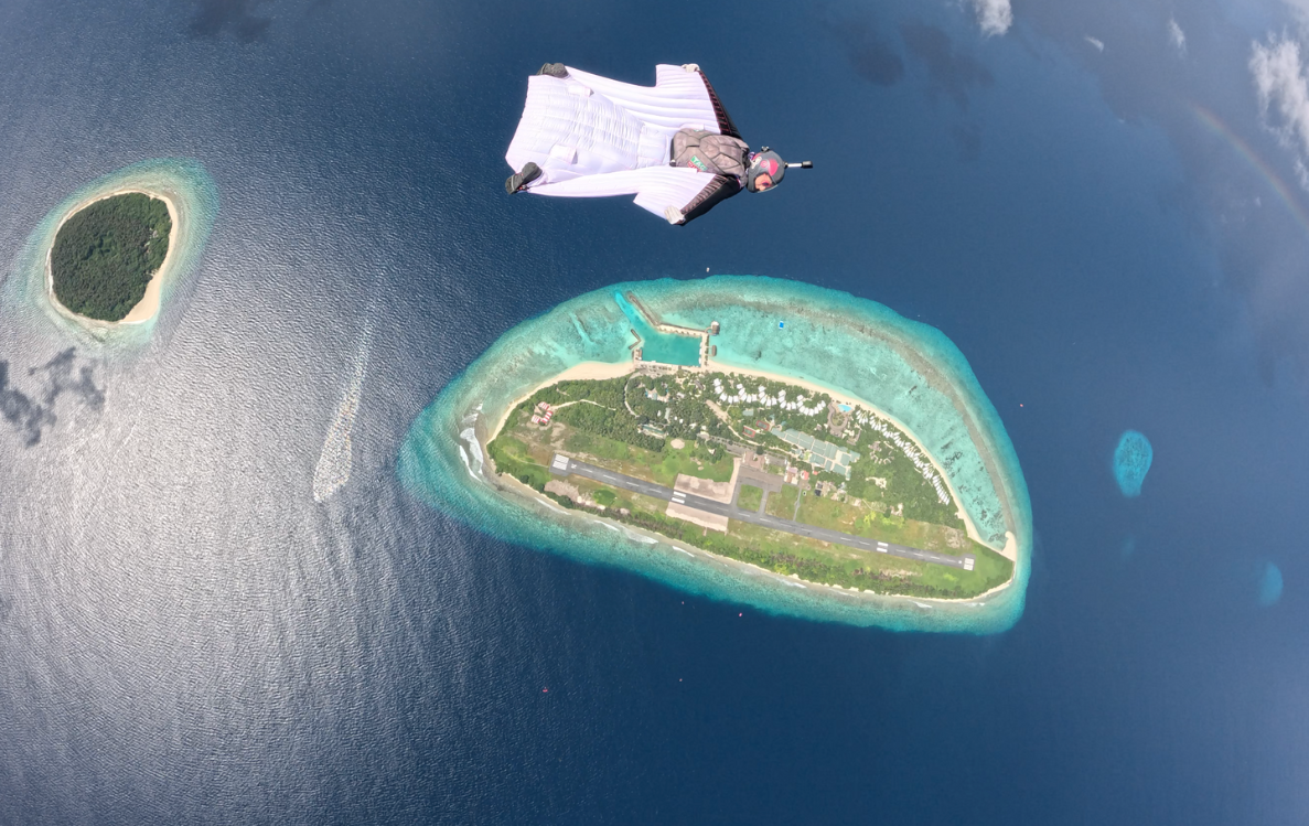 Following one of his wingsuit flights and upon landing on the beach, Fred Fugen said, “It was beautiful, always so nice to fly above this landscape and super cool to fly the wingsuit in front of you guys, land on the beach. What a day. Another beautiful day in Ifuru.
